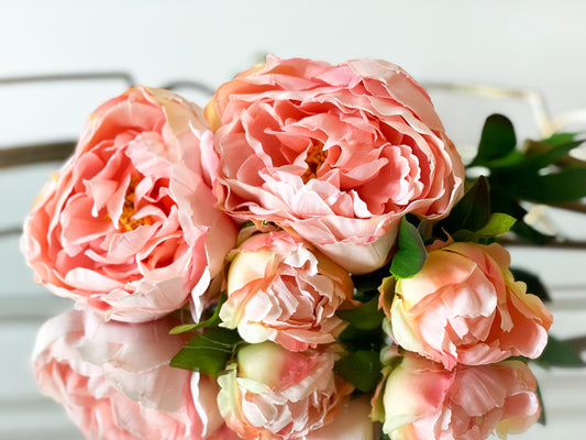 Blush And Cream Peony Bouquet In Round Glass Vase With Acrylic Water