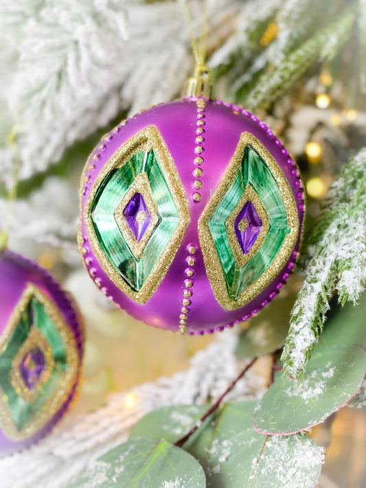 Set Of Two Mardi Gras Diamond Ball Ornaments