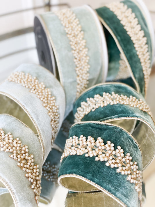Celadon Royal Pearl Vine Velvet Ribbon 4x5yds