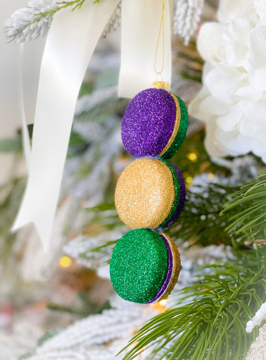 Set Of Two Glitter Mardi Gras Macarons