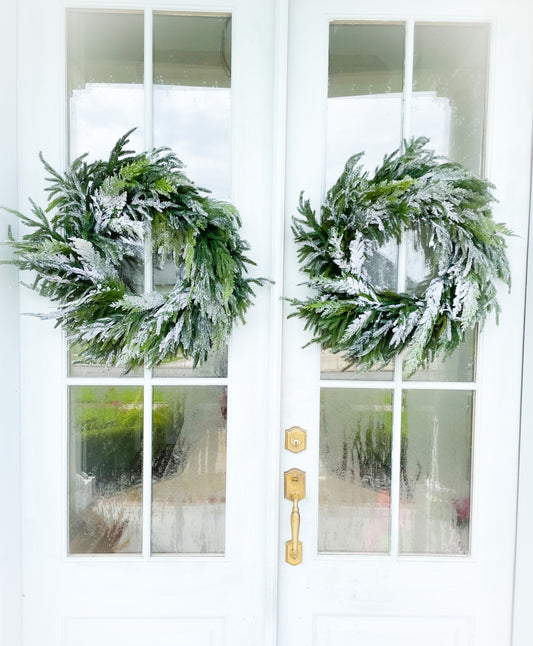Sold outReal Touch Snow Dusted Cedar Wreath