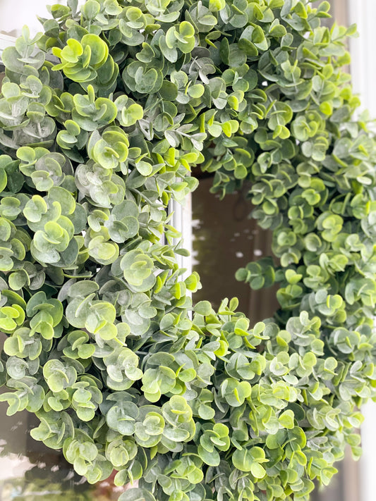 The White Believe Iced Fir Pine Wreath With Sash And Santa