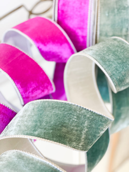 Apple Green Viscoe Velvet Ribbon With Metallic Back