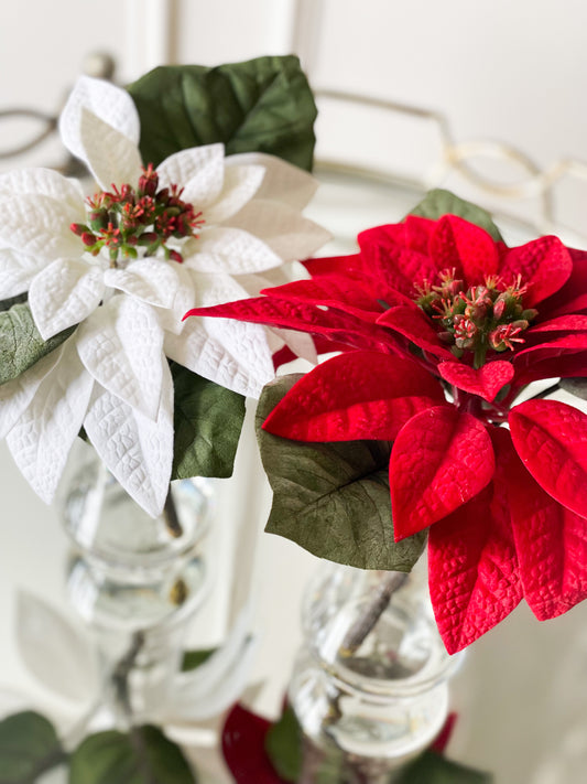 Velvet Poinsettia In Glass Vase With Acrylic Water