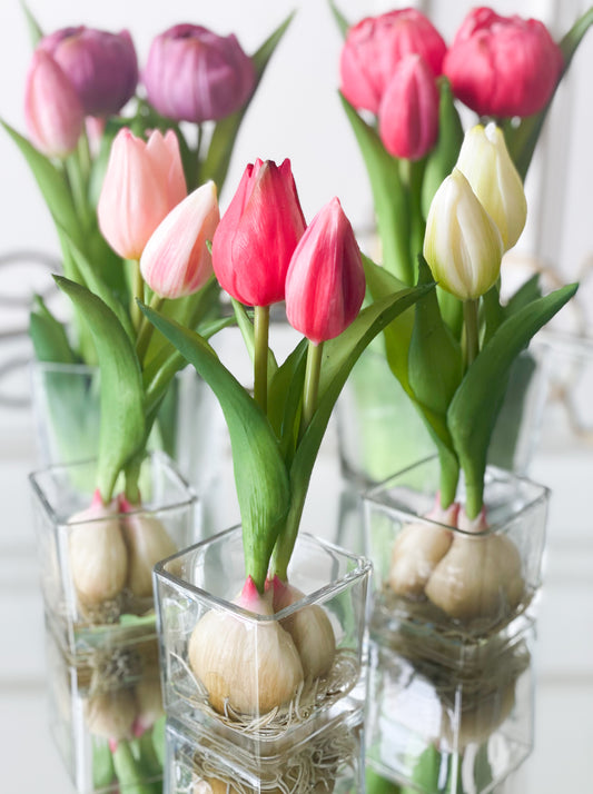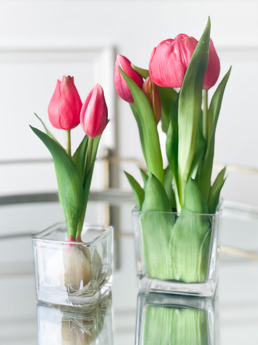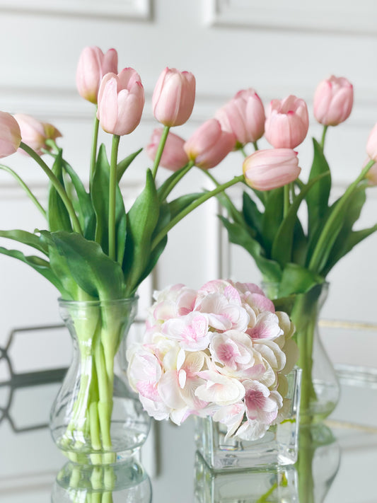 Soft Pink Real Touch Tulip Bouquet In Glass Vase