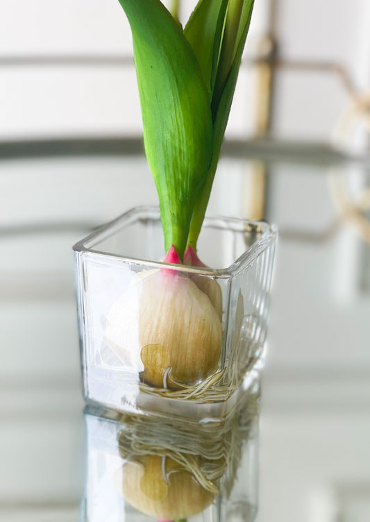 Sold outFuchsia Tulip Bud And Bulb In Vase