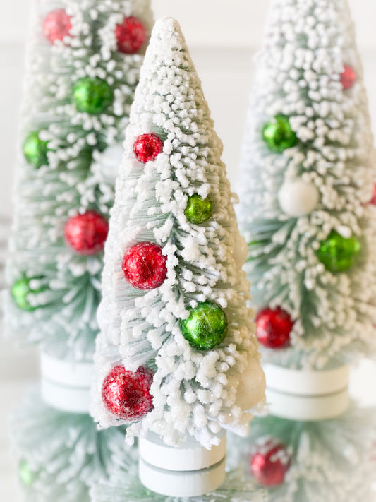 Set Of 3 Red/Green Bottle Brush Trees