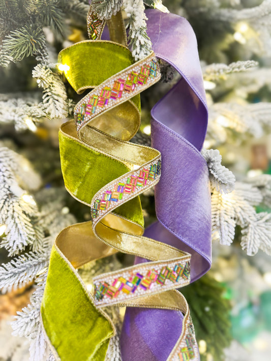 White Lush Velvet Ribbon with Silver Trim & Backing