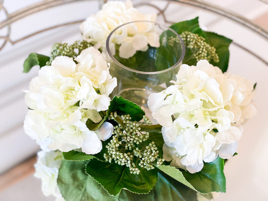 White With Lavender Hydrangeas In Glass Vase With Acrylic Water