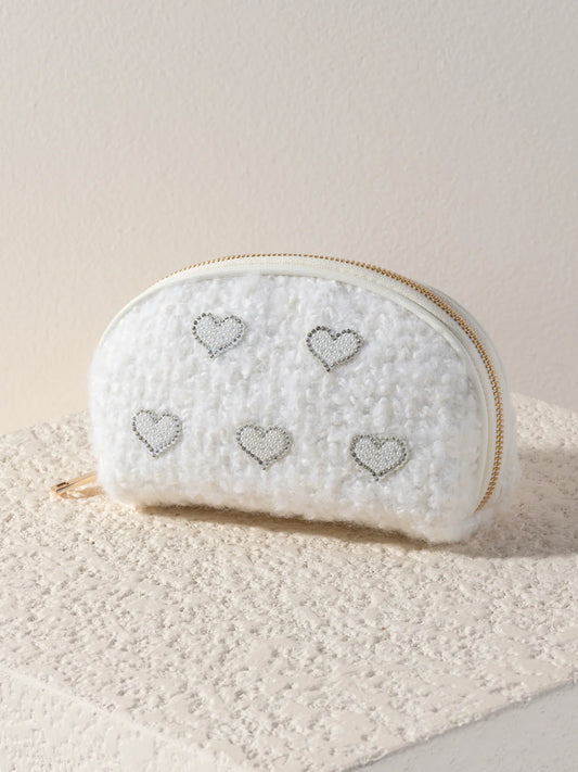 Shiraleah Hearts Boucle Zip Pouch, Ivory