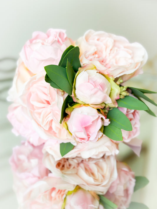 Peony And Rose Bouquet With Satin Ribbon And Card