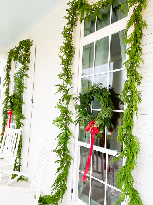The White Believe Iced Fir Pine Wreath With Sash And Santa
