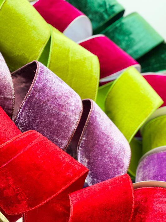 Apple Green Viscoe Velvet Ribbon With Metallic Back