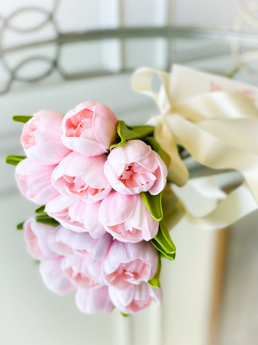 Light Pink Tulip Bundle With Satin Bow And Dance Card