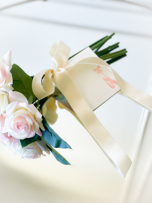 Soft Pink Rose Bouquet With Satin Bow And Dance Card
