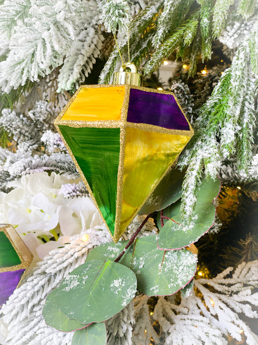 Set Of Two Painted Mardi Gras Diamond Ornament