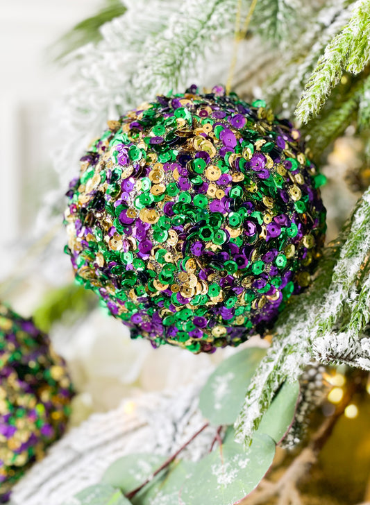 Set Of Two Mardi Gras Diamond Ball Ornaments
