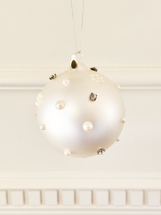 Set of Six Frosted Pearl & Crystal Snowfall Ornaments