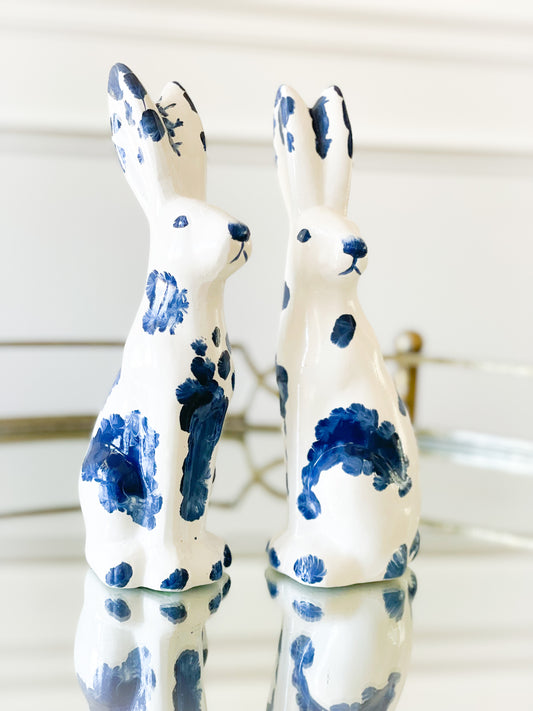 Set Of 2 Blue And White Terracotta Bloomsbury Bunnies