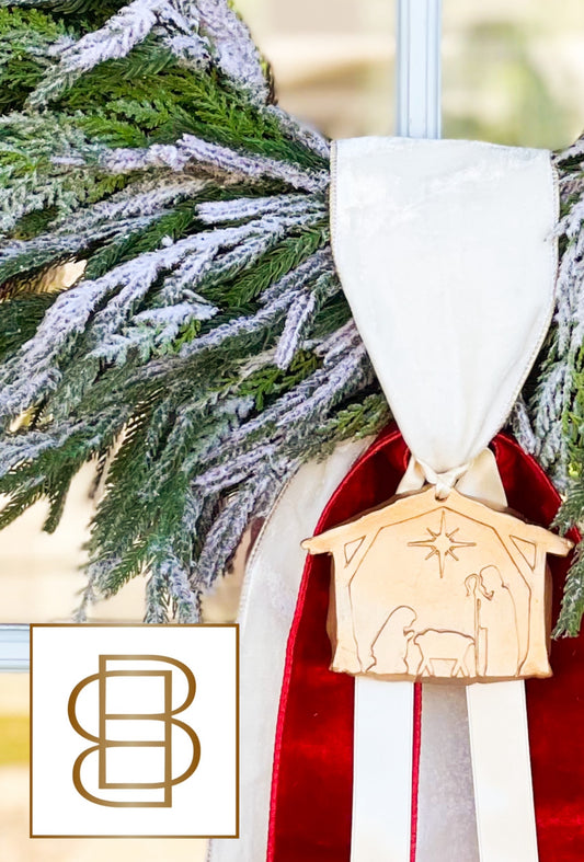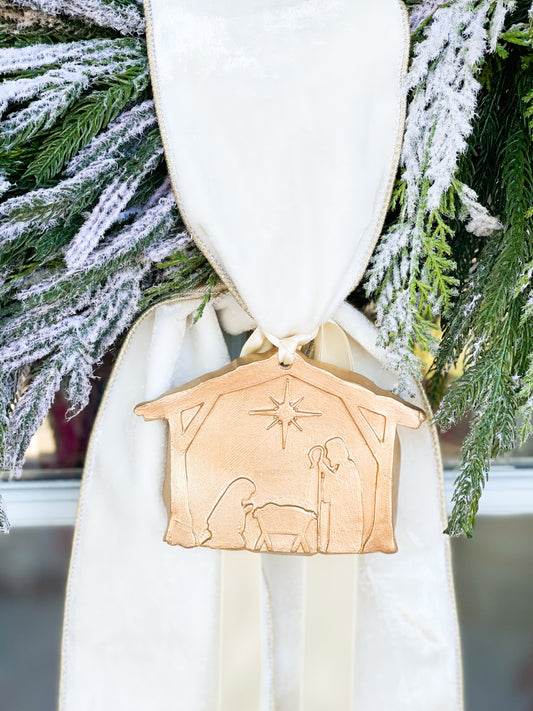 Emmanuel Wreath And Sash With Gold Nativity Ornament