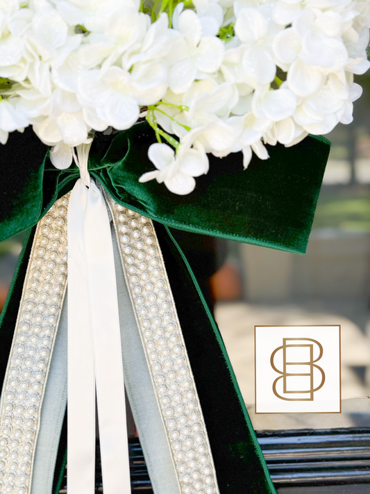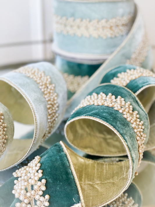 Seafoam Royal Pearl Vine Velvet Ribbon (Preorder) 4”x5yd
