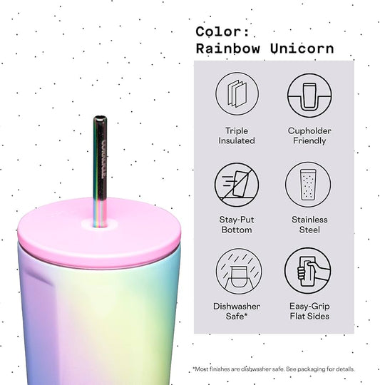 COLD CUP INSULATED TUMBLER WITH STRAW- Rainbow Unicorn