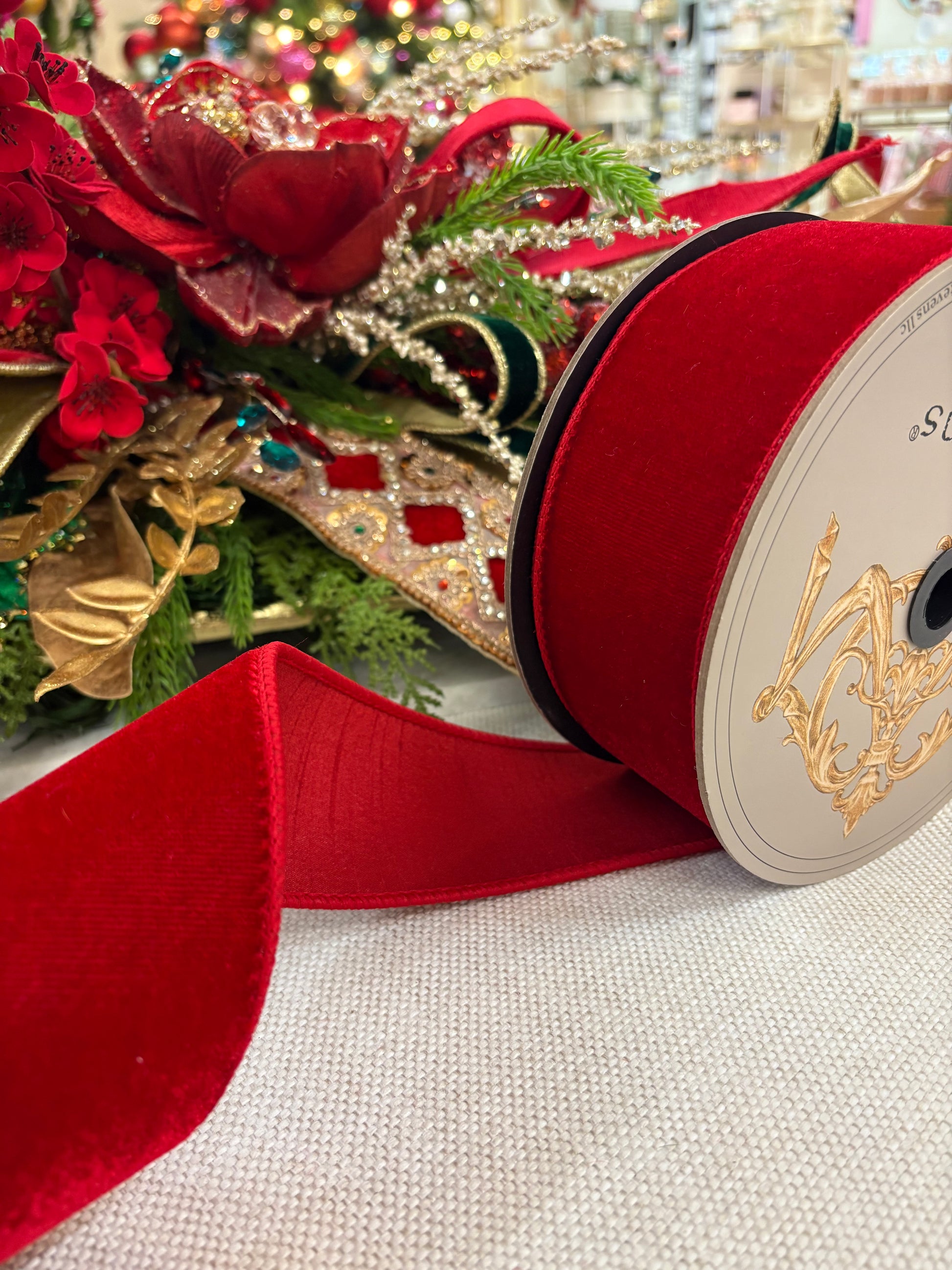 A classic holiday favorite! This rich red velvet ribbon adds a touch of luxury to any wreath, tree, or garland. It’s soft texture and wired edges make it easy to shape beautiful bows and elegant accents. Perfect for all your Christmas decorating needs!