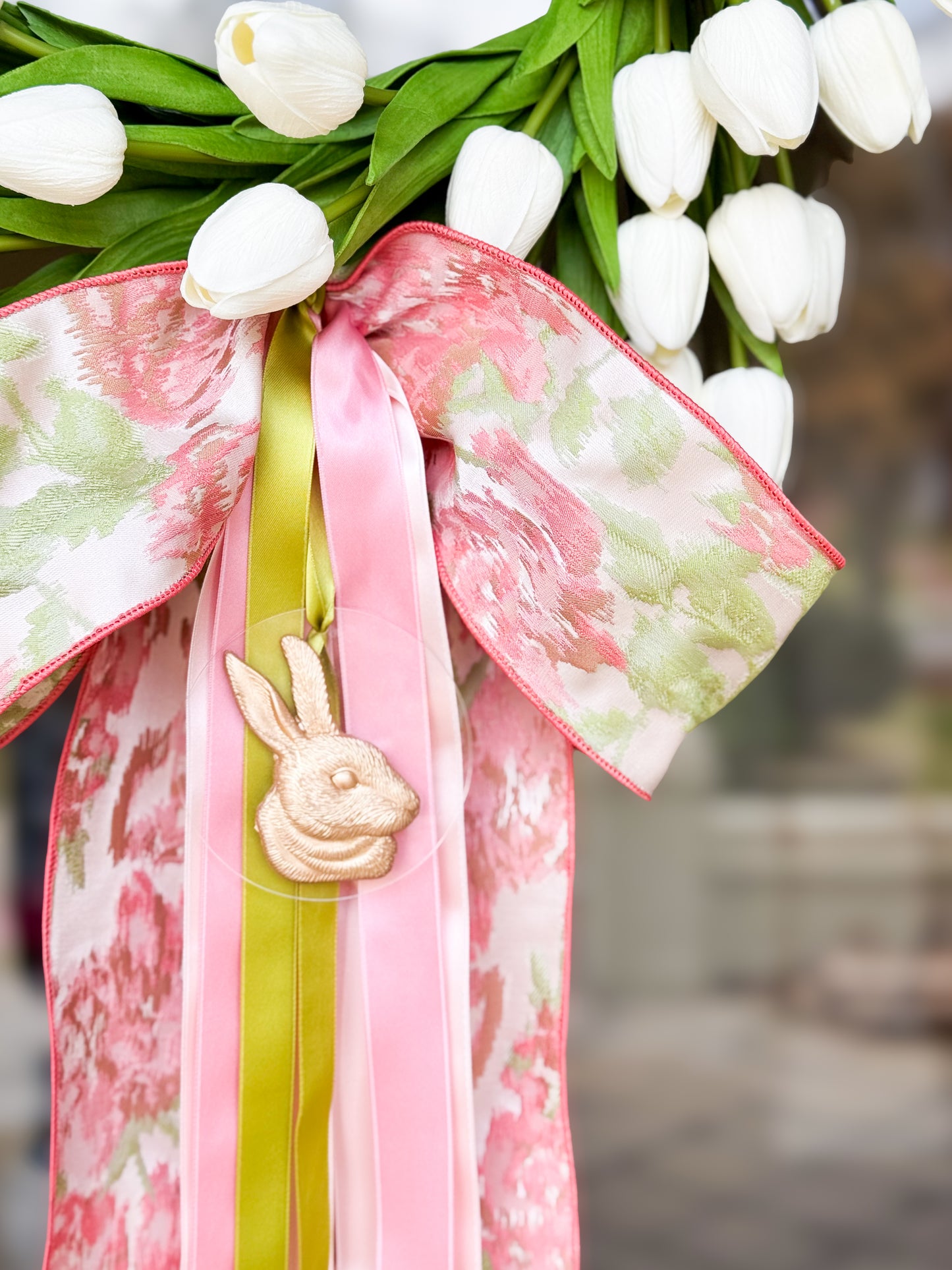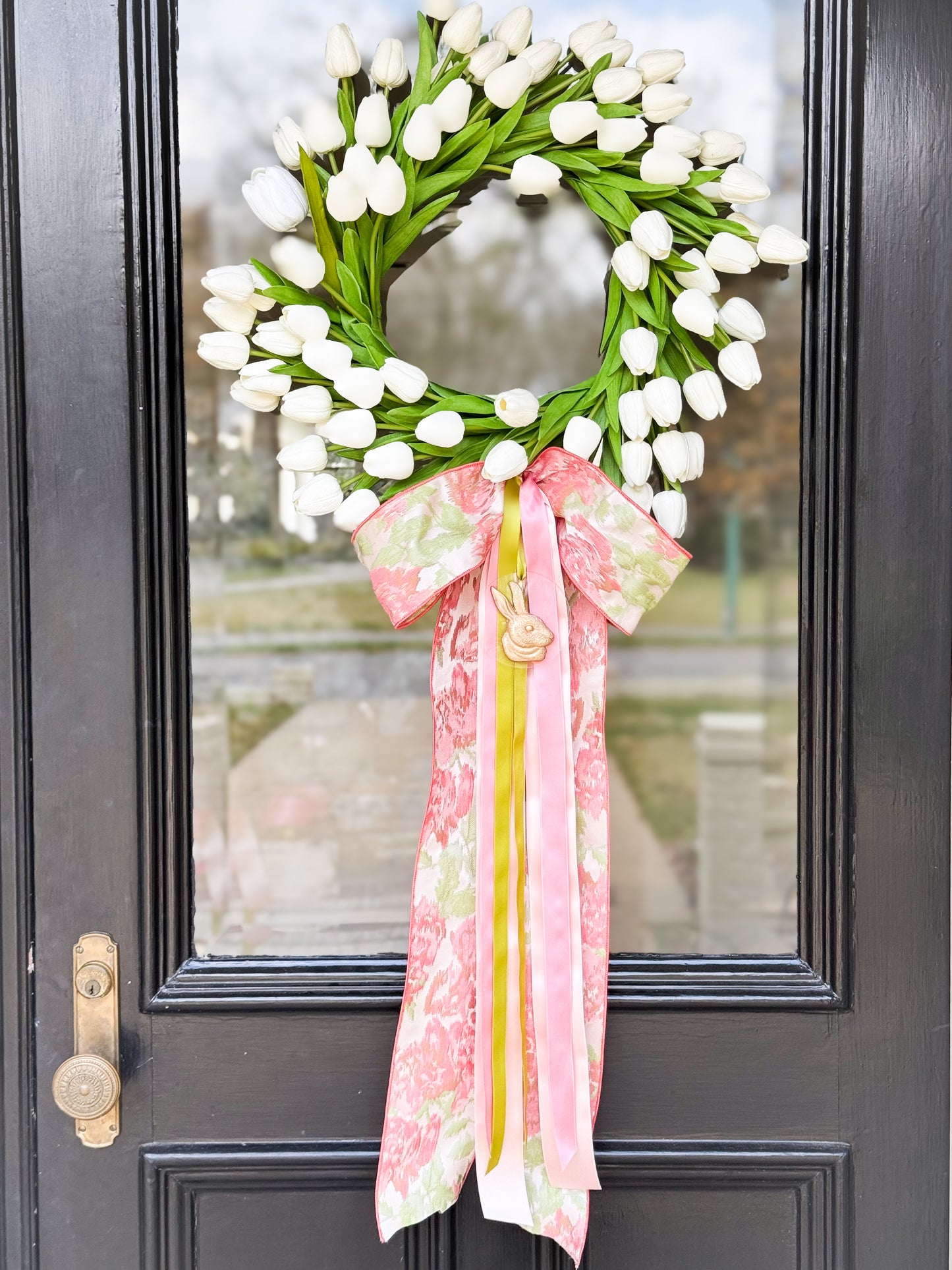 The Abstract Cottontail White Real Touch Tulip Wreath Is The Epitome Of Easter Elegance. It’s Realistic Tulip Buds Draped With A Designer Ribbon Layered Bow And A Handcrafted Bunny Ornament Is A Lovely Way To Celebrate The Season.