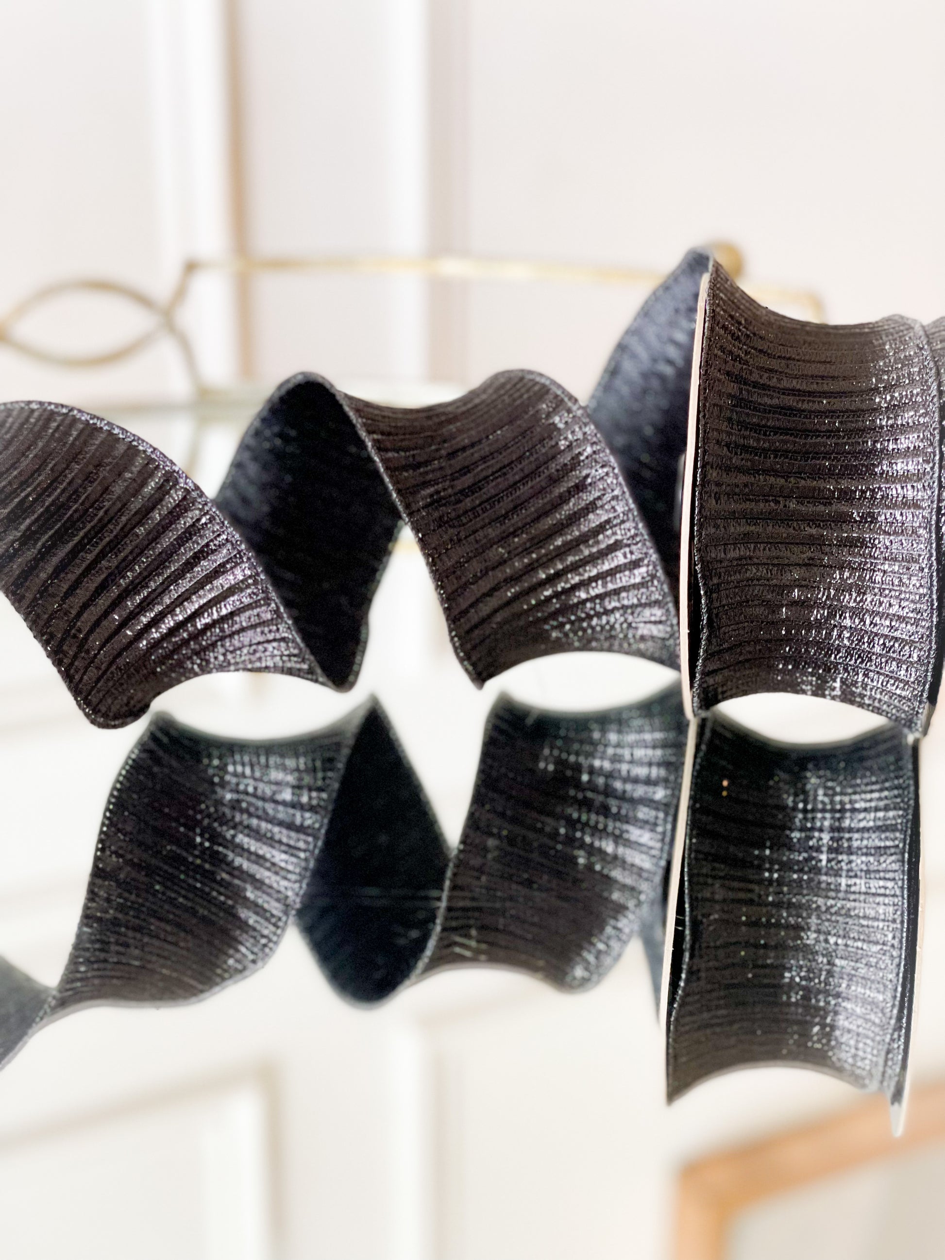 2.5“ x 10yds Fluted Lame Accordion Ribbon, Black