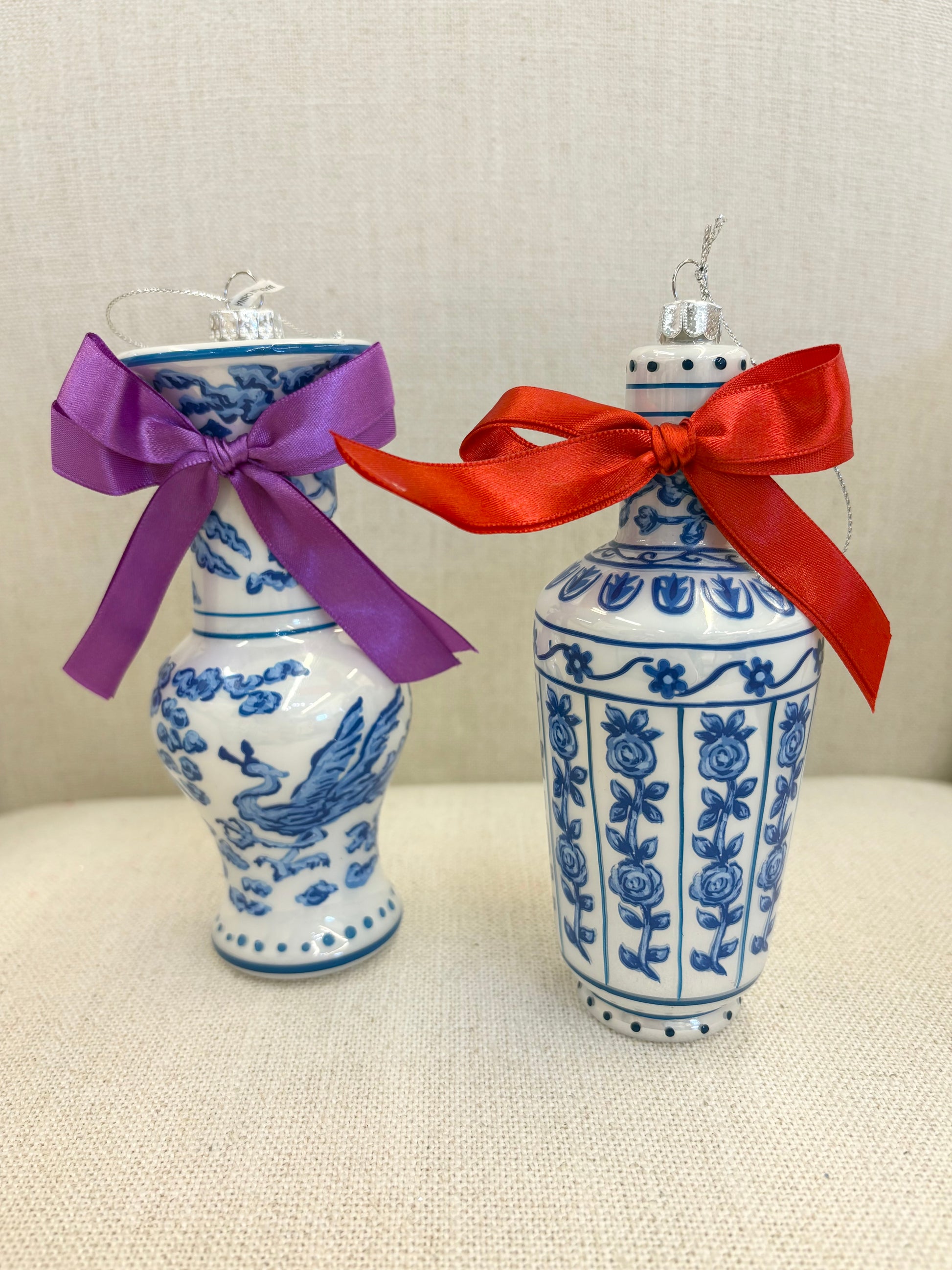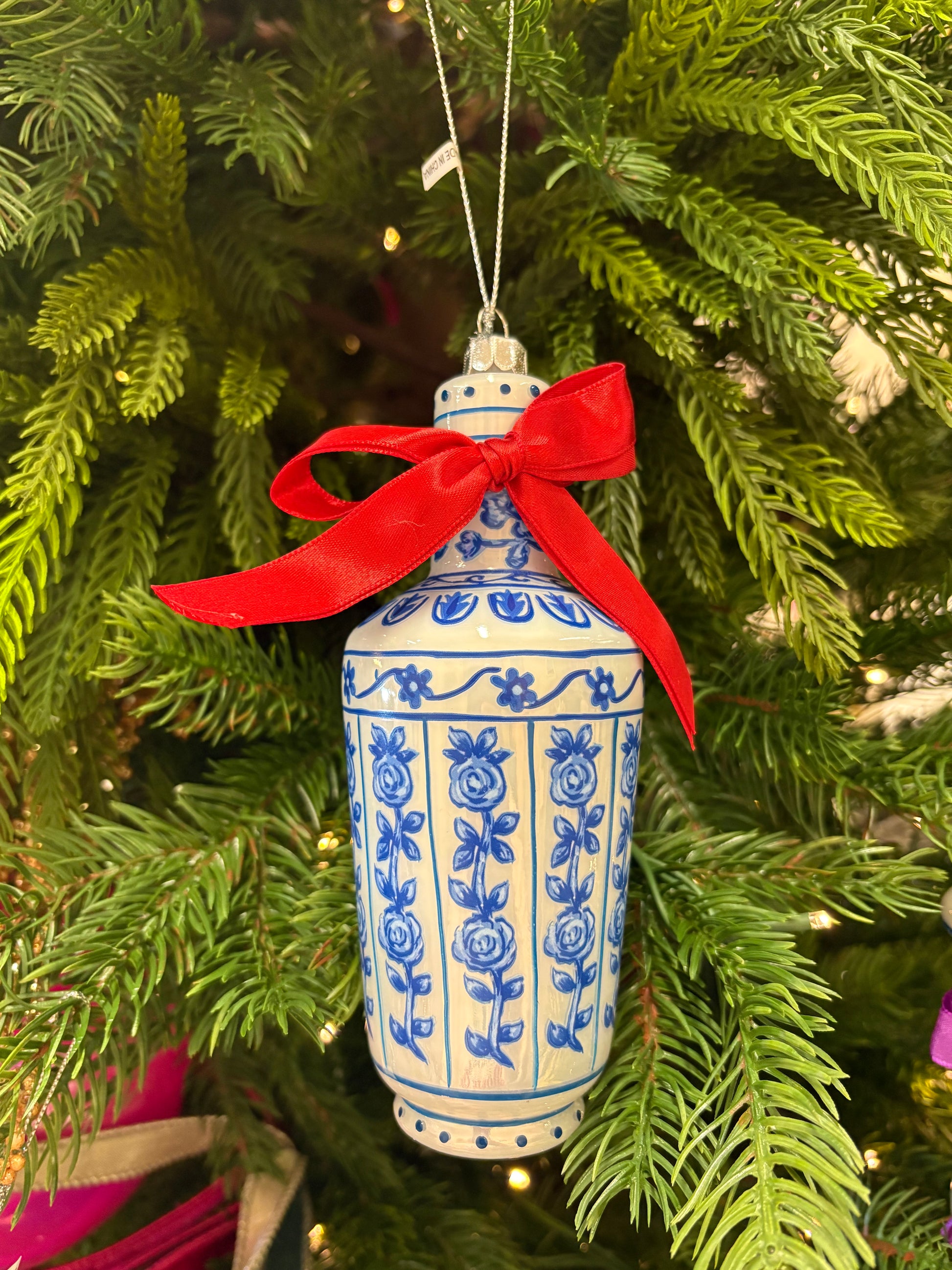 Bring timeless elegance to your holiday décor with this stunning Blue and White Ginger Jar Ornament Set. Each ornament features intricate chinoiserie-inspired patterns in classic cobalt and porcelain white, adding a sophisticated touch to your tree. Designed to complement French blue, gold, and velvet accents, these ornaments pair beautifully with luxury ribbons and frosted foliage for a truly refined look.