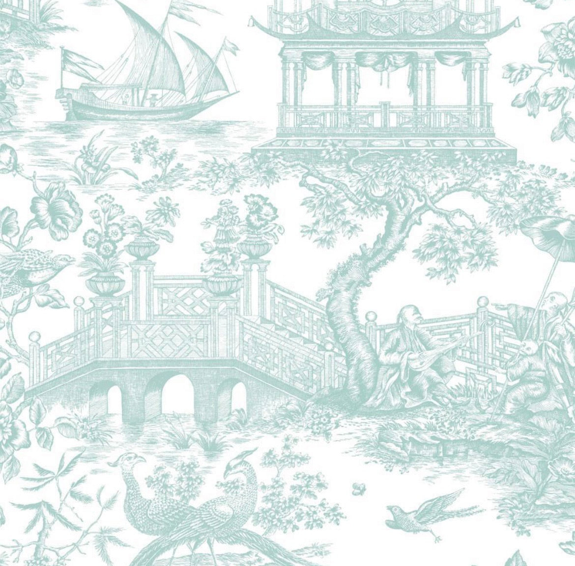 Chinoiserie Toile Blue & White Wrapping Paper