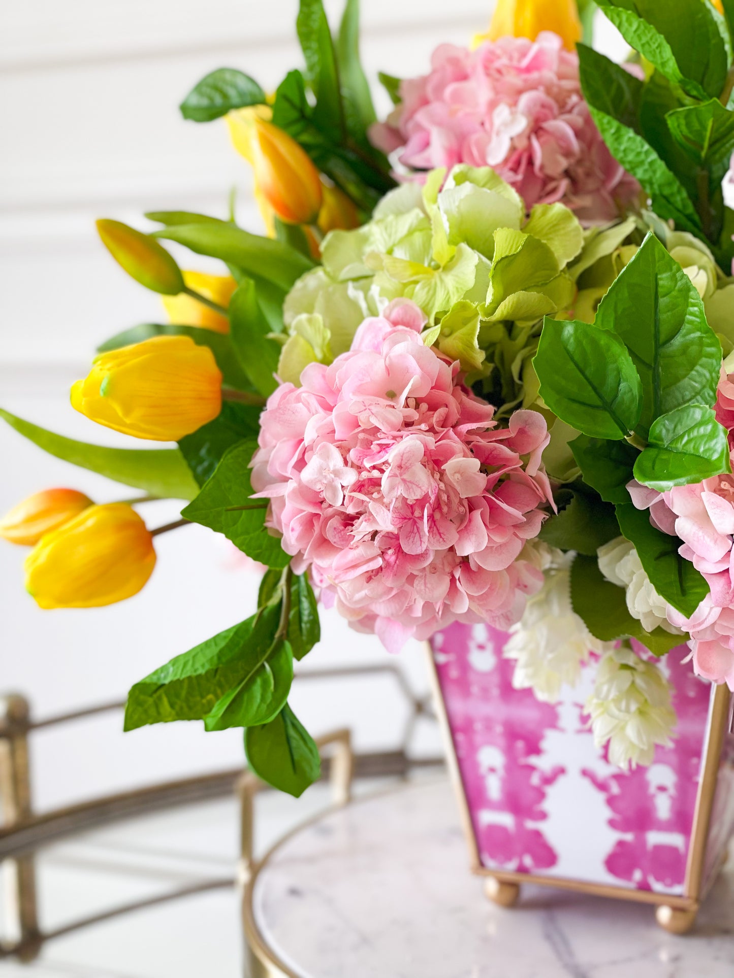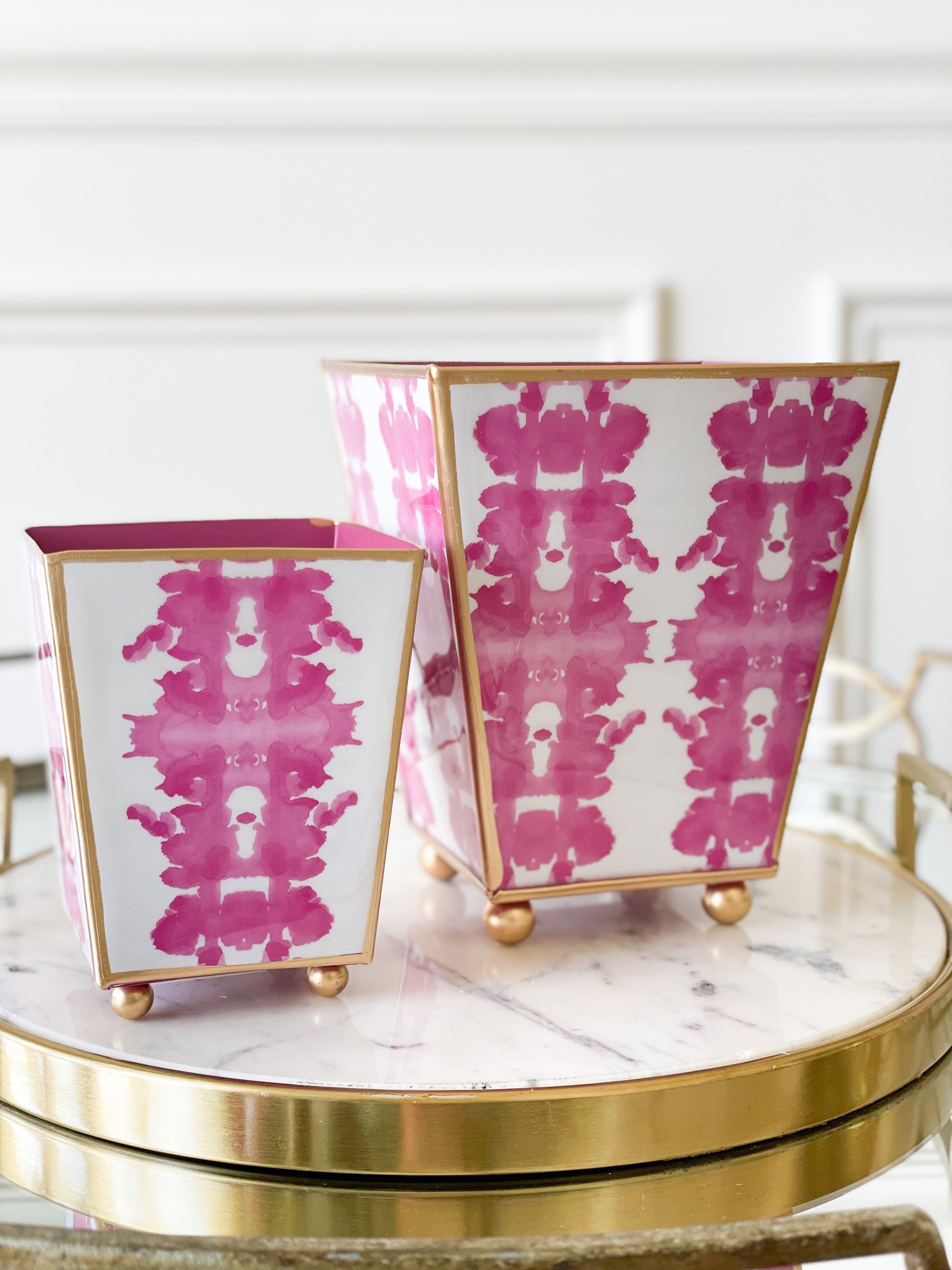 4x4 Pink And White Ink Blot Enameled Cachepot