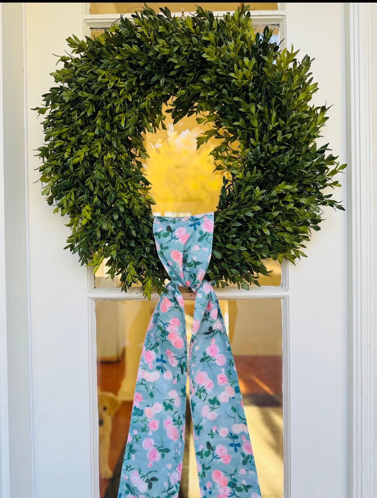 4” x 56” Poplin Pale Pink Watercolor Roses Sash, Pink Blue
