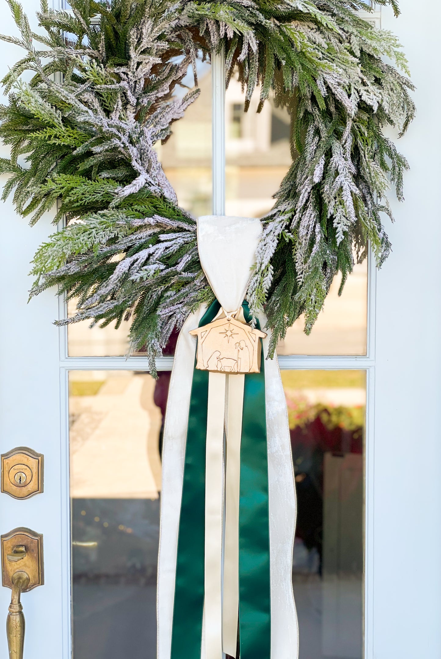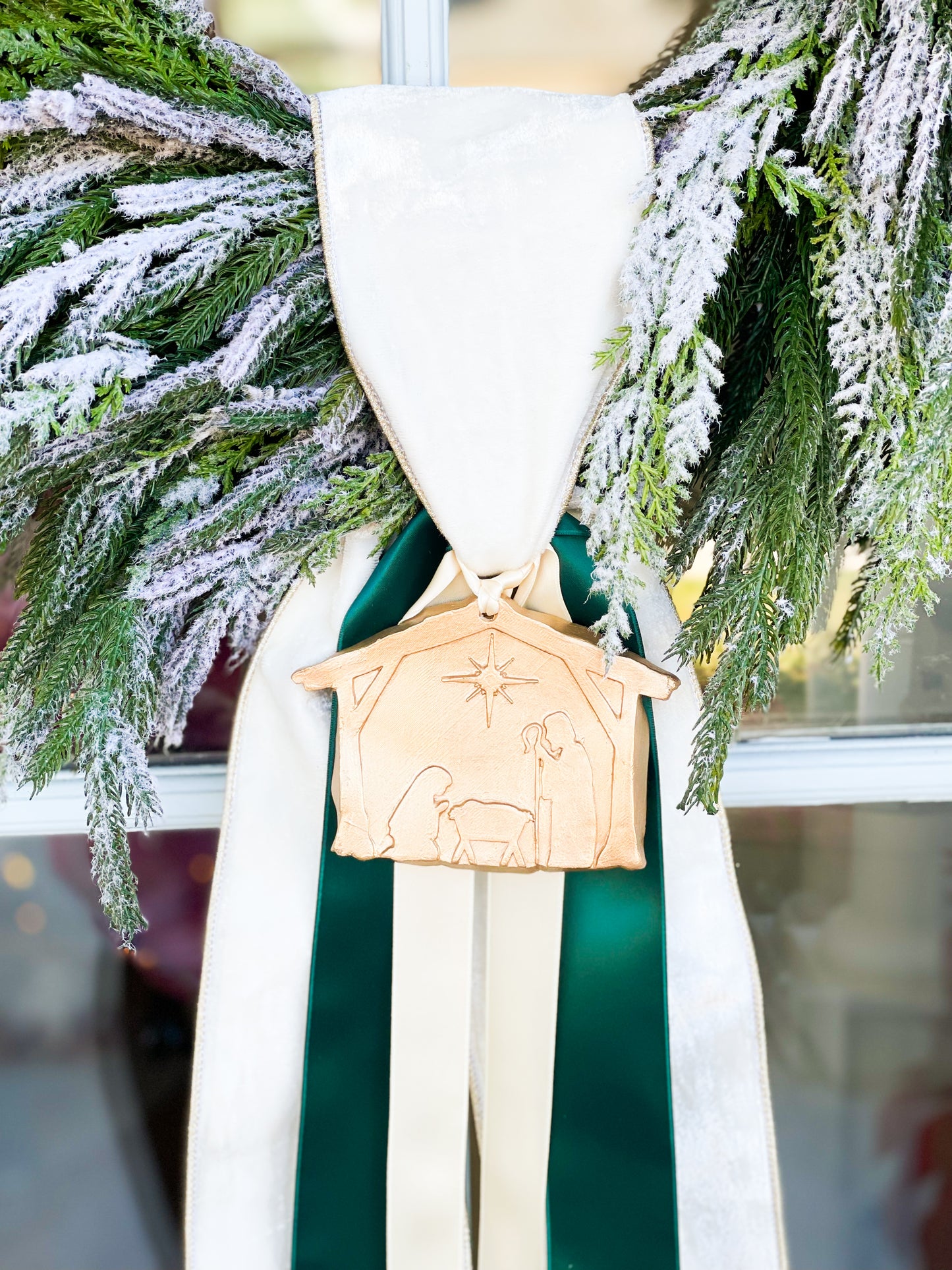 Emmanuel Wreath And Sash With Gold Nativity Ornament