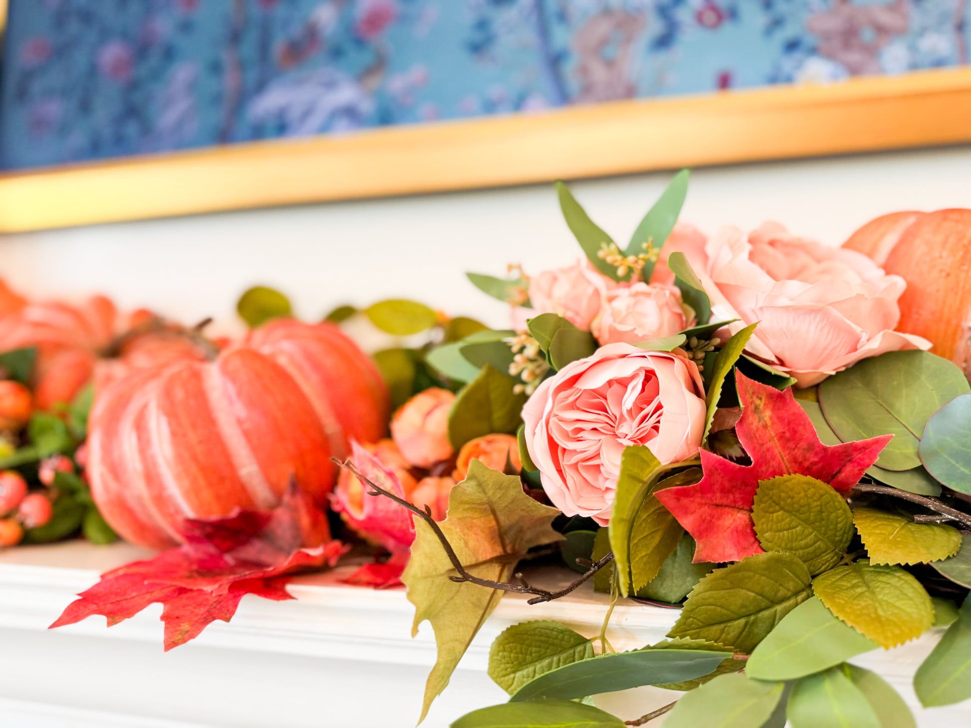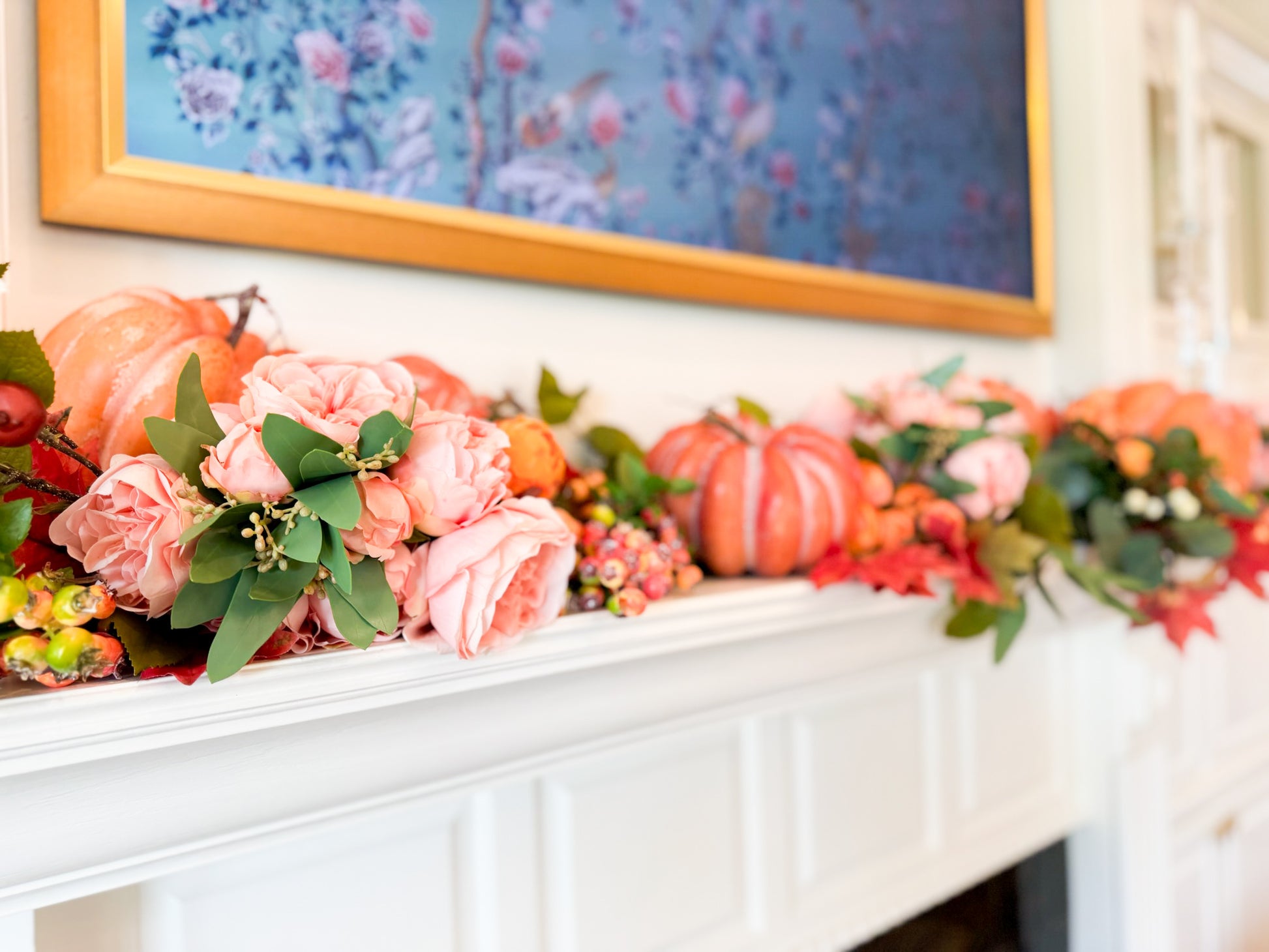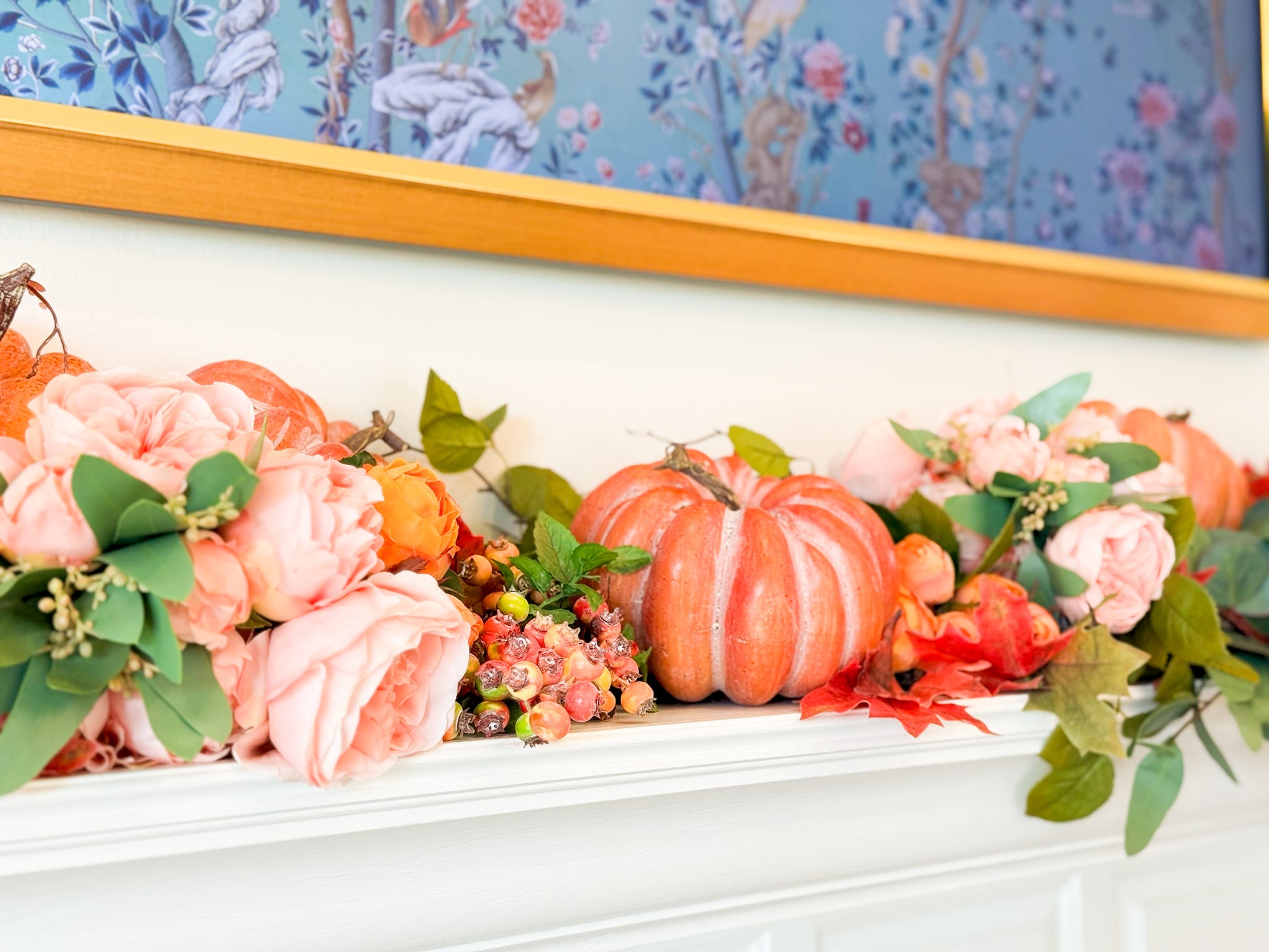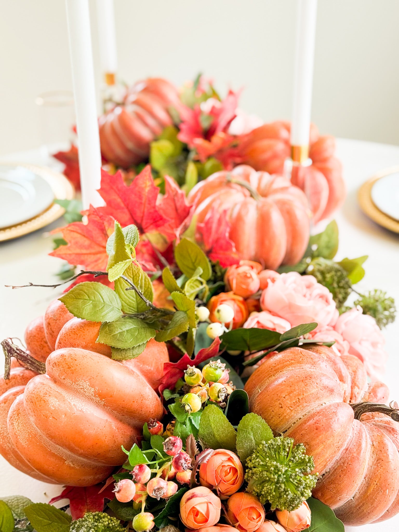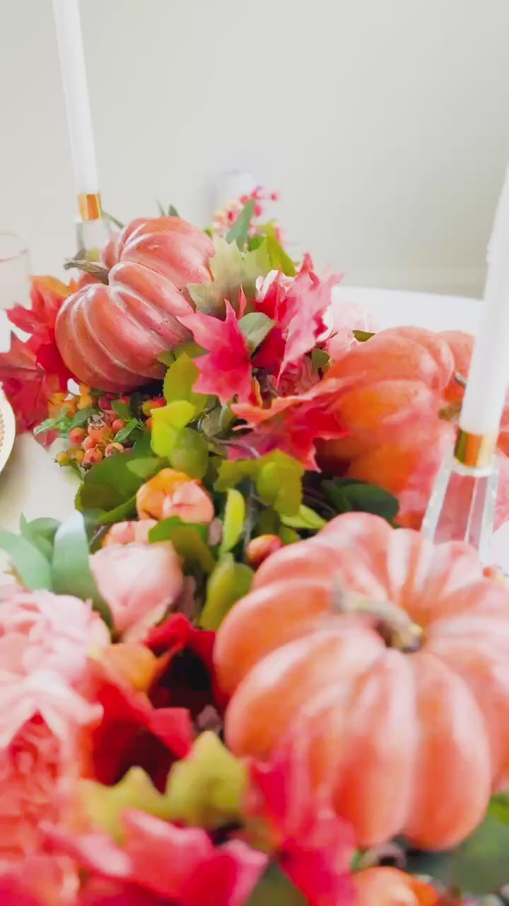 - Handcrafted pumpkins in rich peach tones for a seasonal focal point