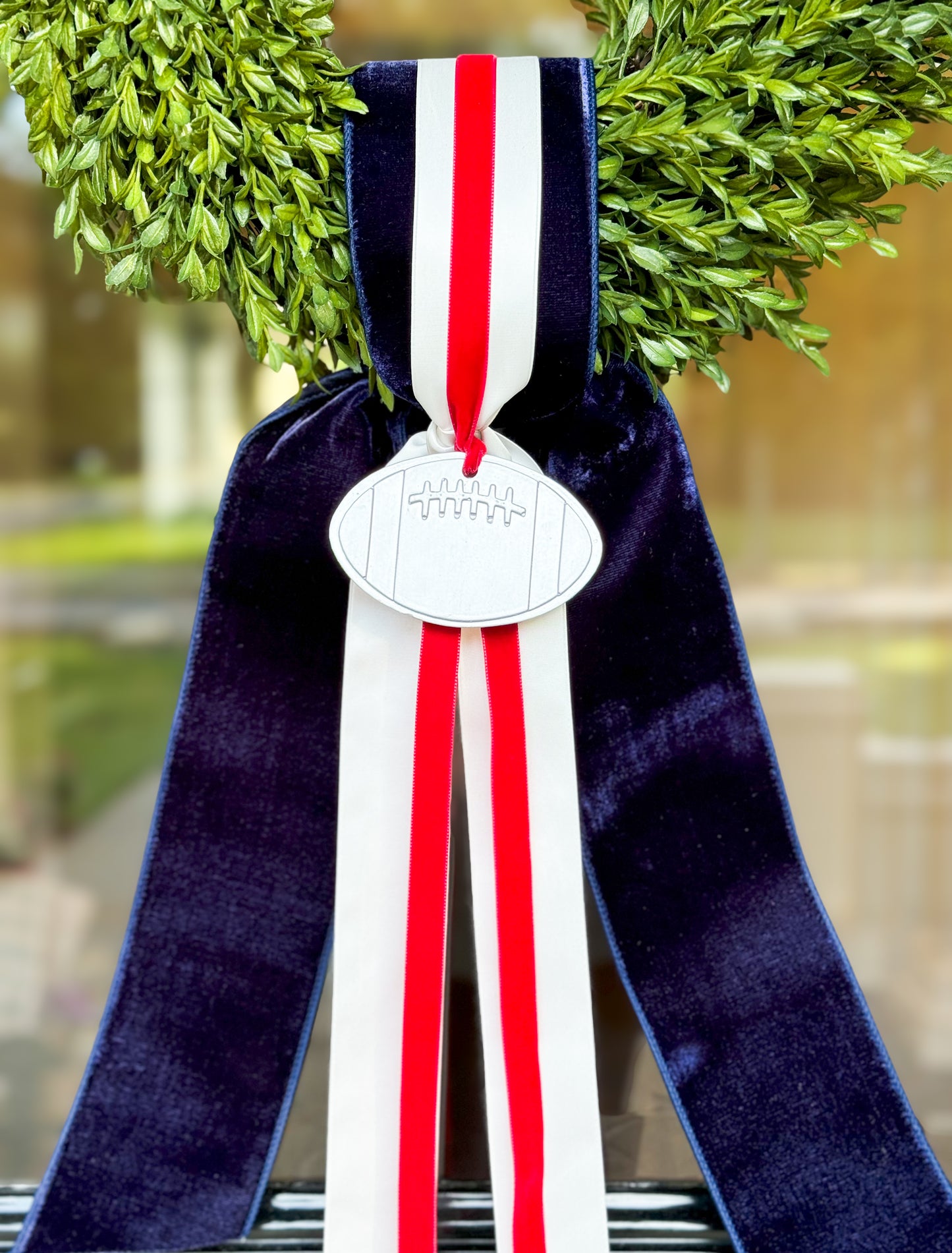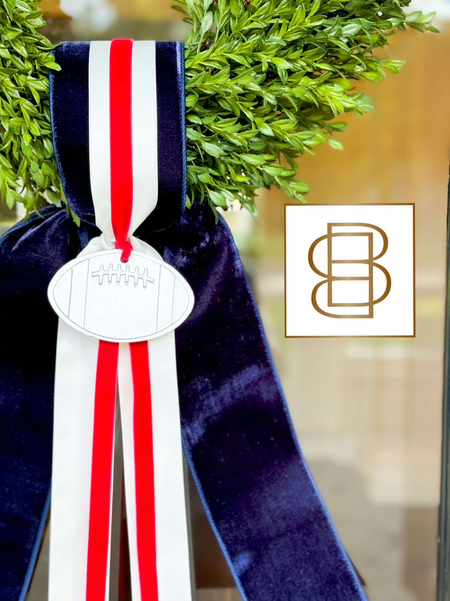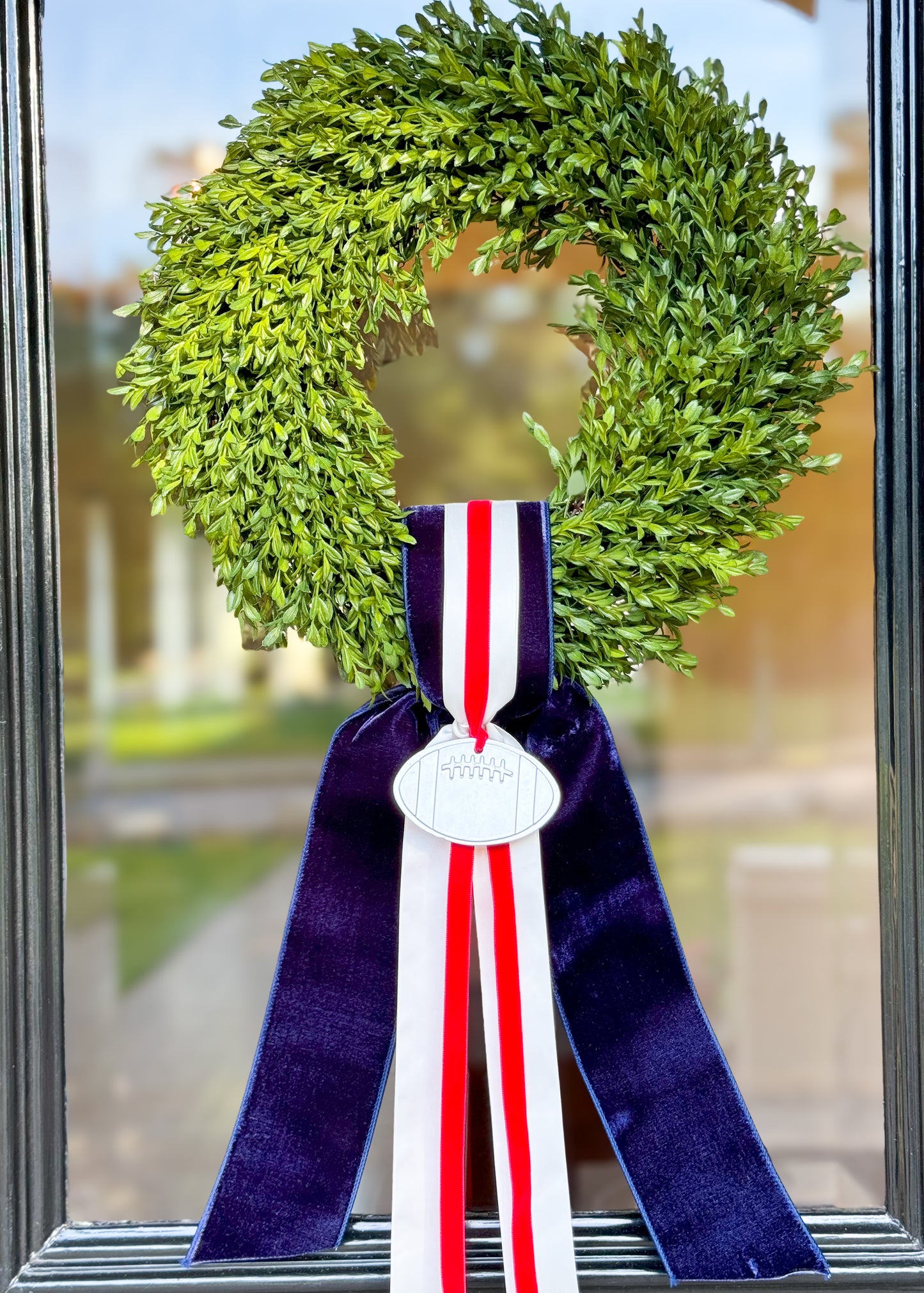 Gameday Tea Leaf Wreath And Layered Ribbon Sash With Handmade Ornament
