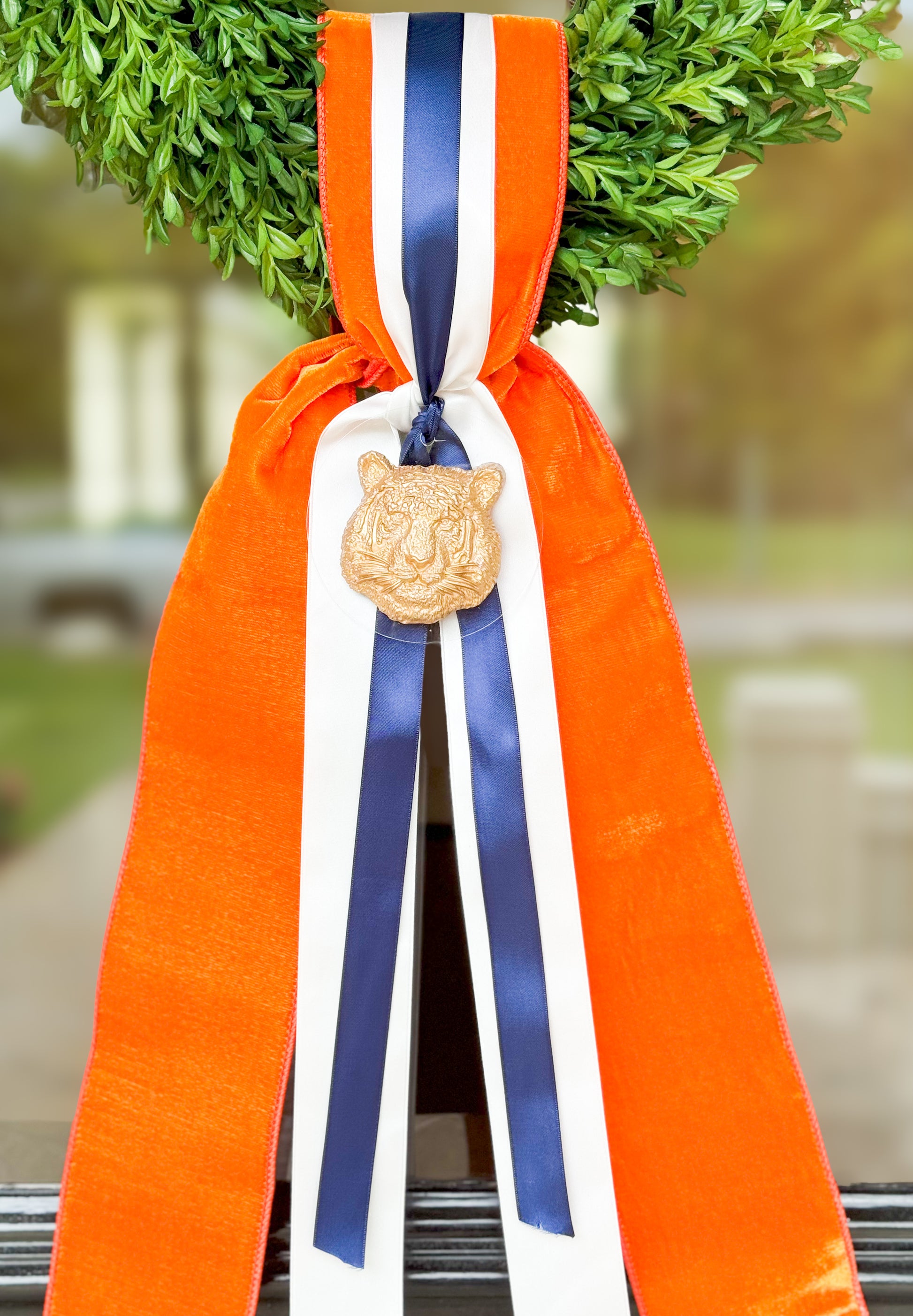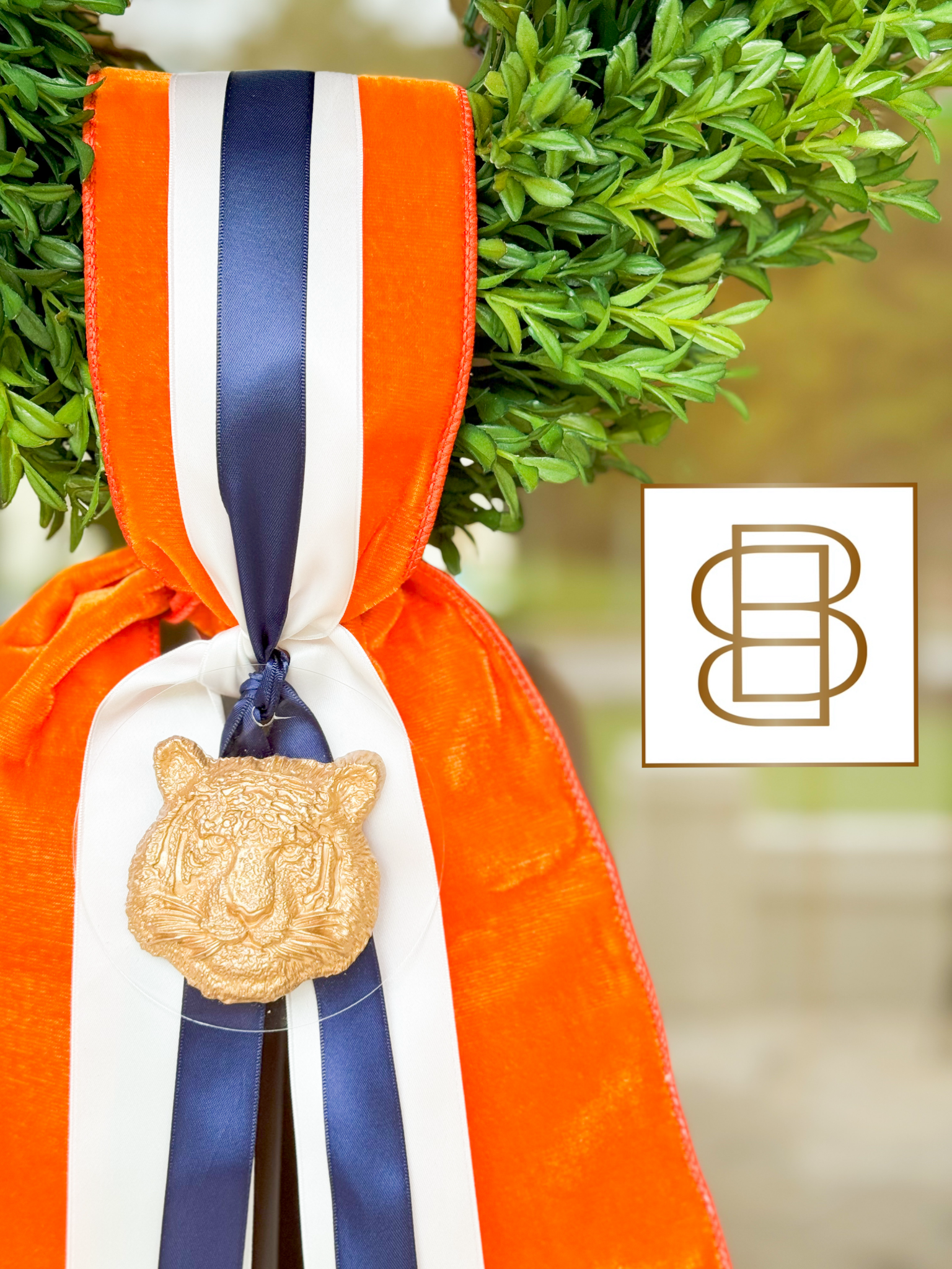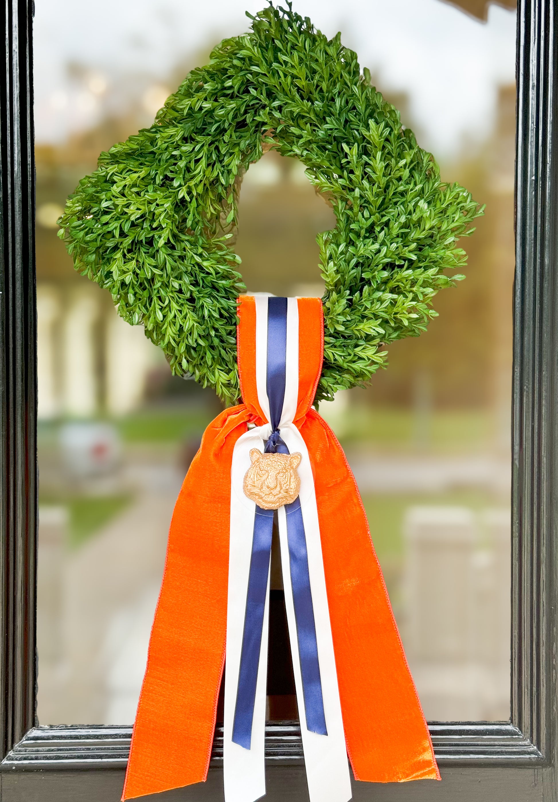 Gameday Tea Leaf Wreath And Layered Ribbon Sash With Handmade Ornament