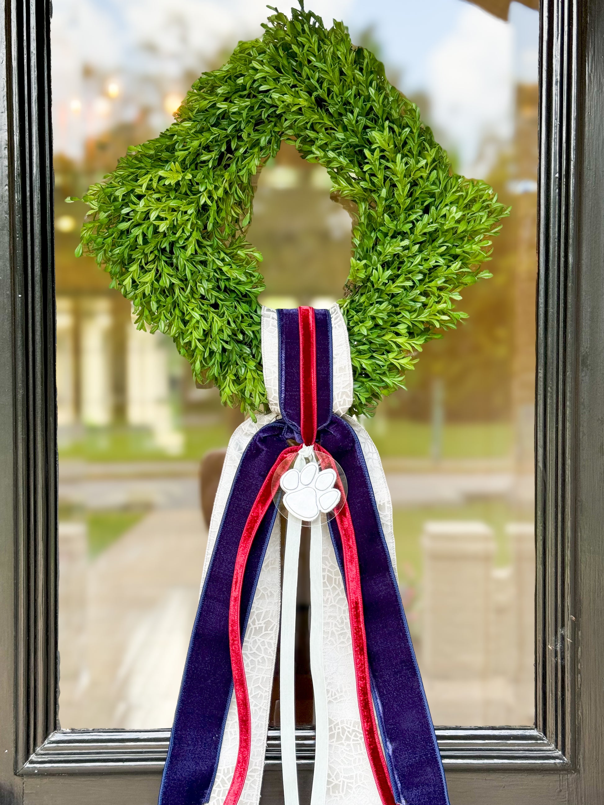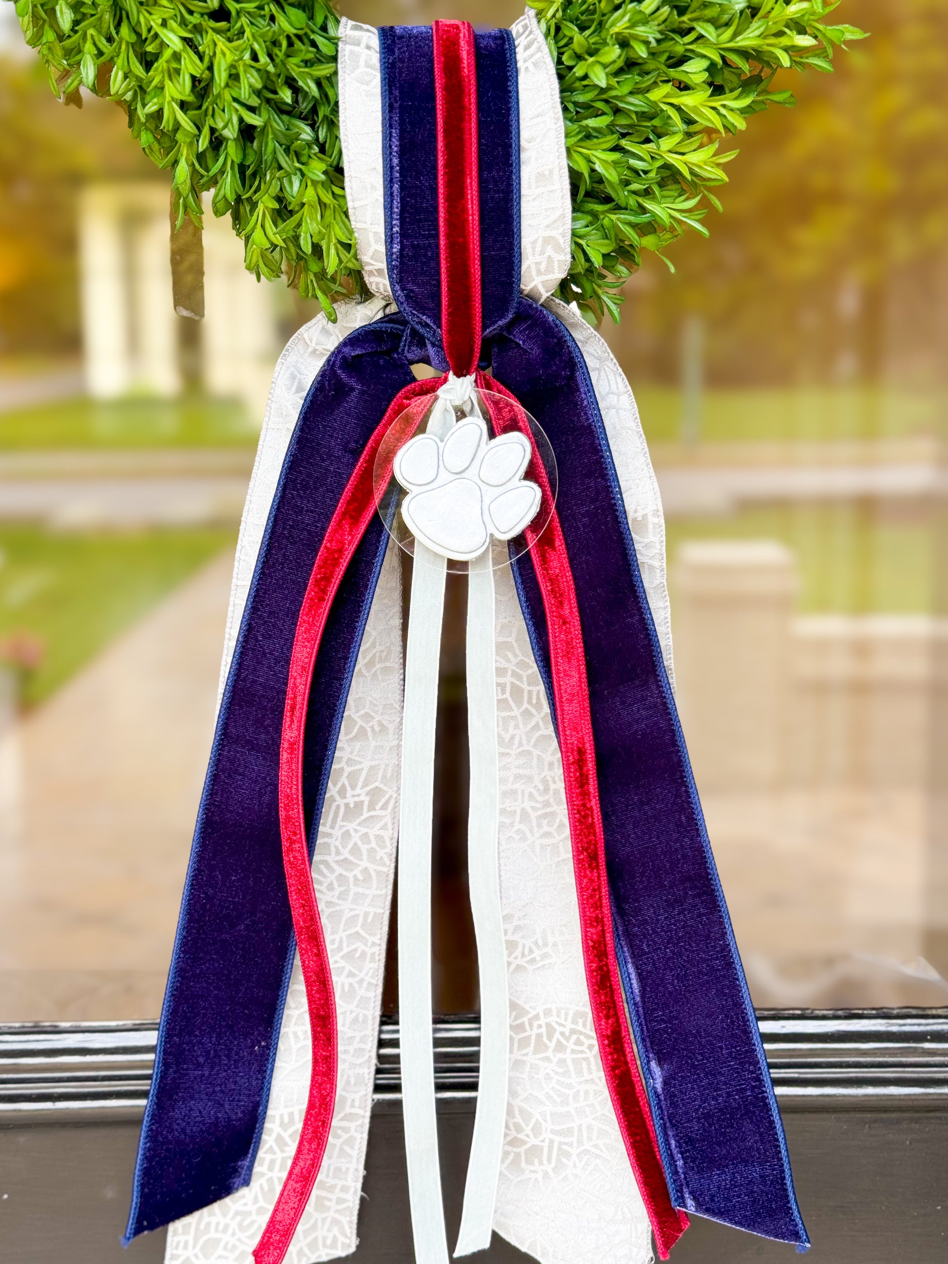Gameday Tea Leaf Wreath And Layered Ribbon Sash With Handmade Ornament