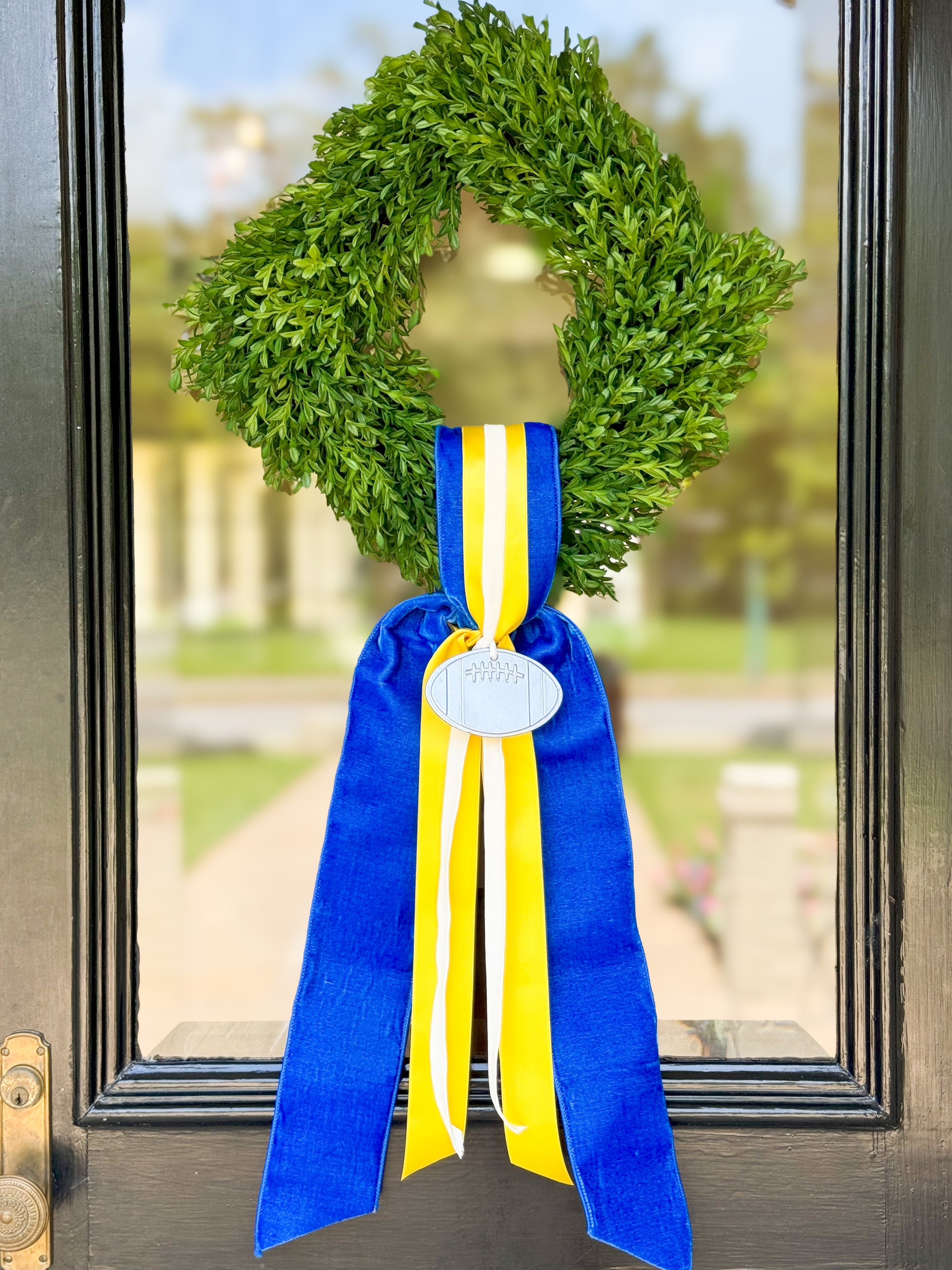Gameday Tea Leaf Wreath And Layered Ribbon Sash With Handmade Ornament