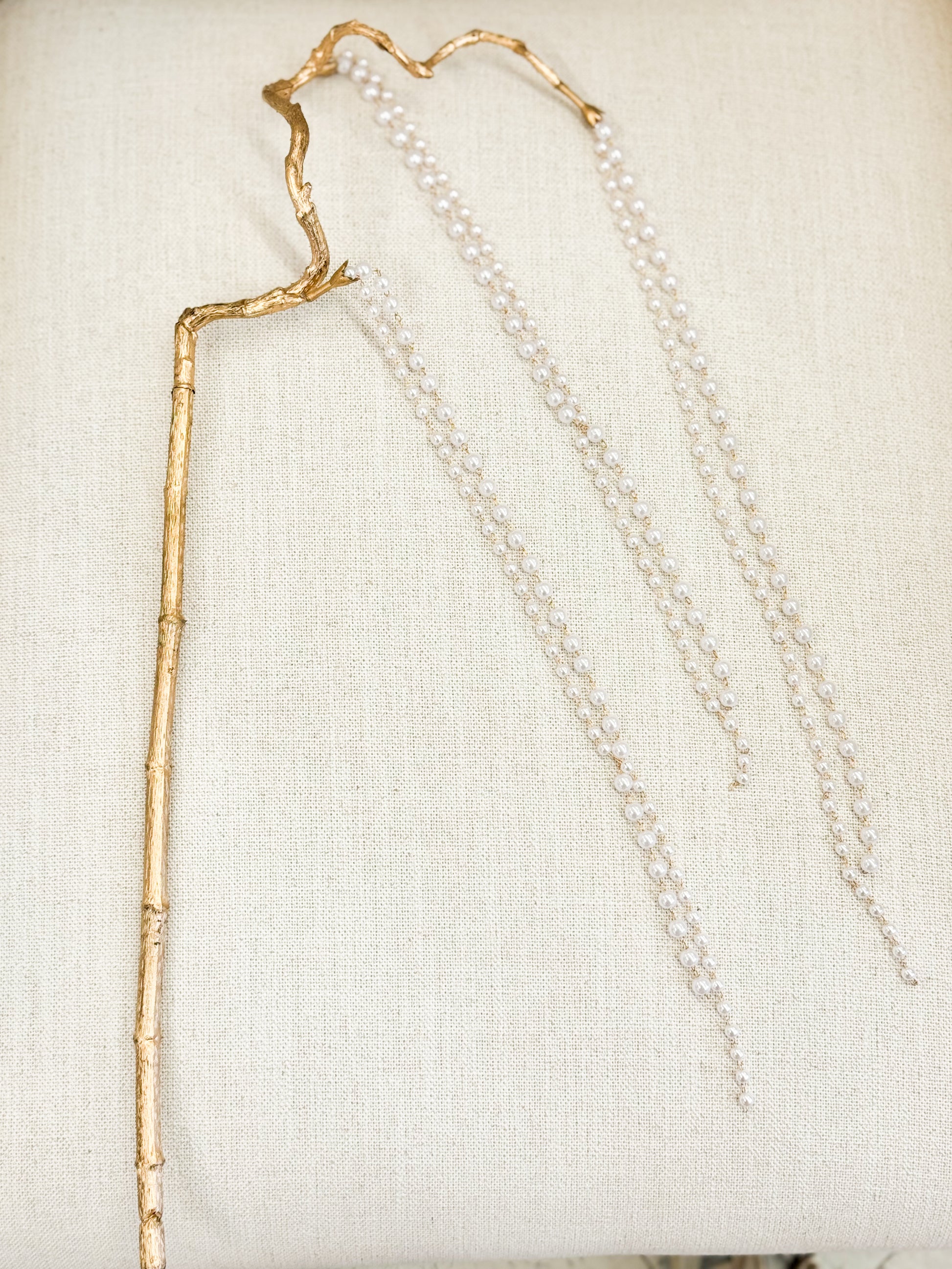 - Each stem features cascading pearl strands on a gold branch