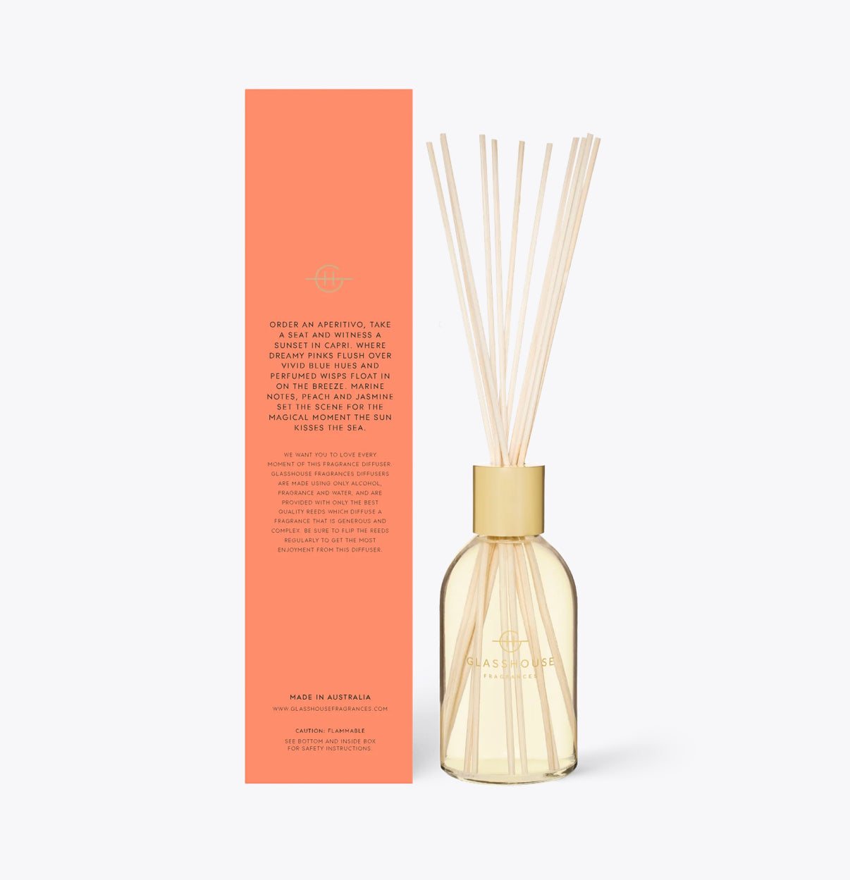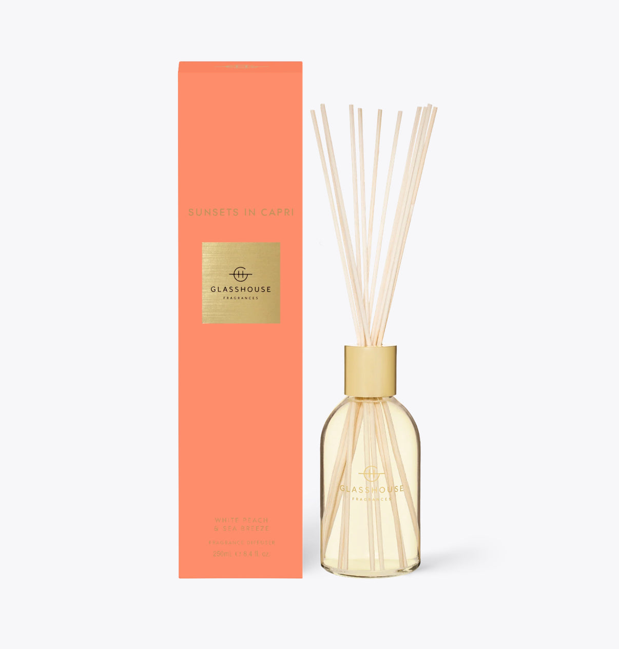 GLASSHOUSE Sunsets in Capri White Peach and & Sea Breeze Fragrance Diffuser 8.4 Oz