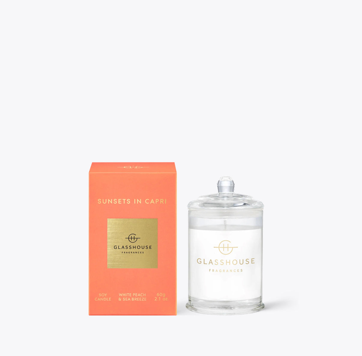 GLASSHOUSE Sunsets in Capri White Peach & Sea Breeze Soy Candle 2.1 Oz
