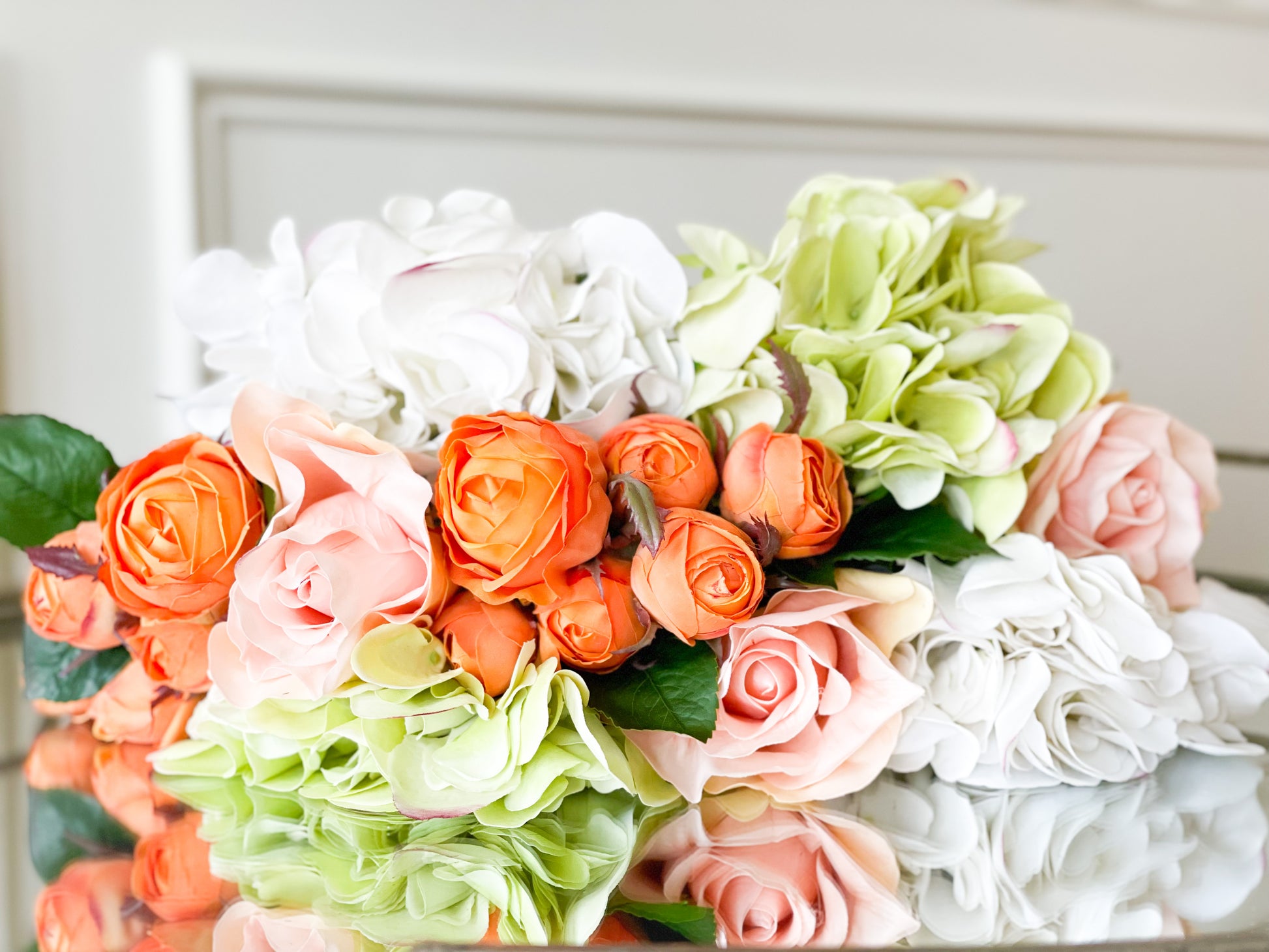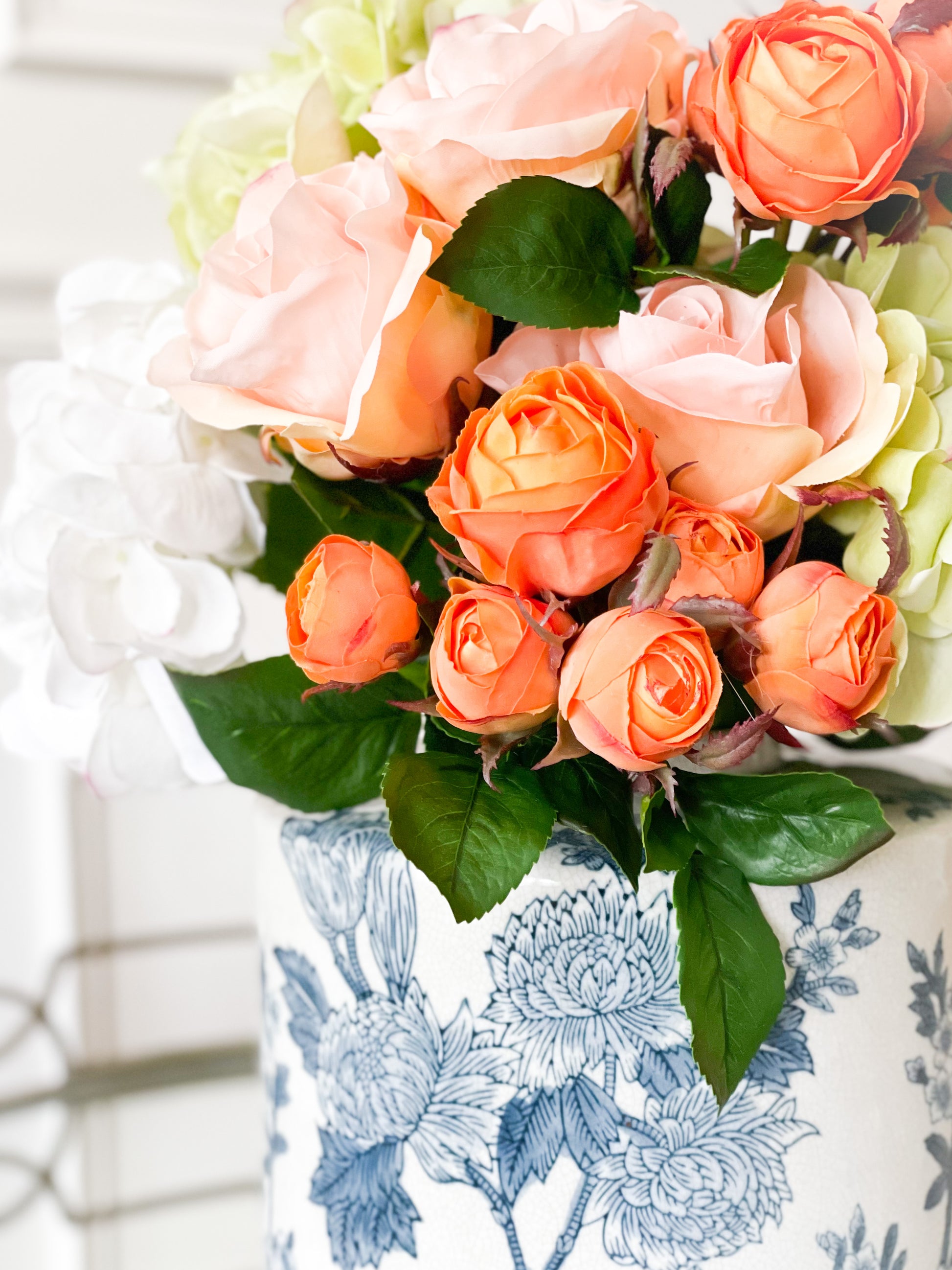 (2) Light Orange 22” Real Touch Multi Bud English Rose Stem