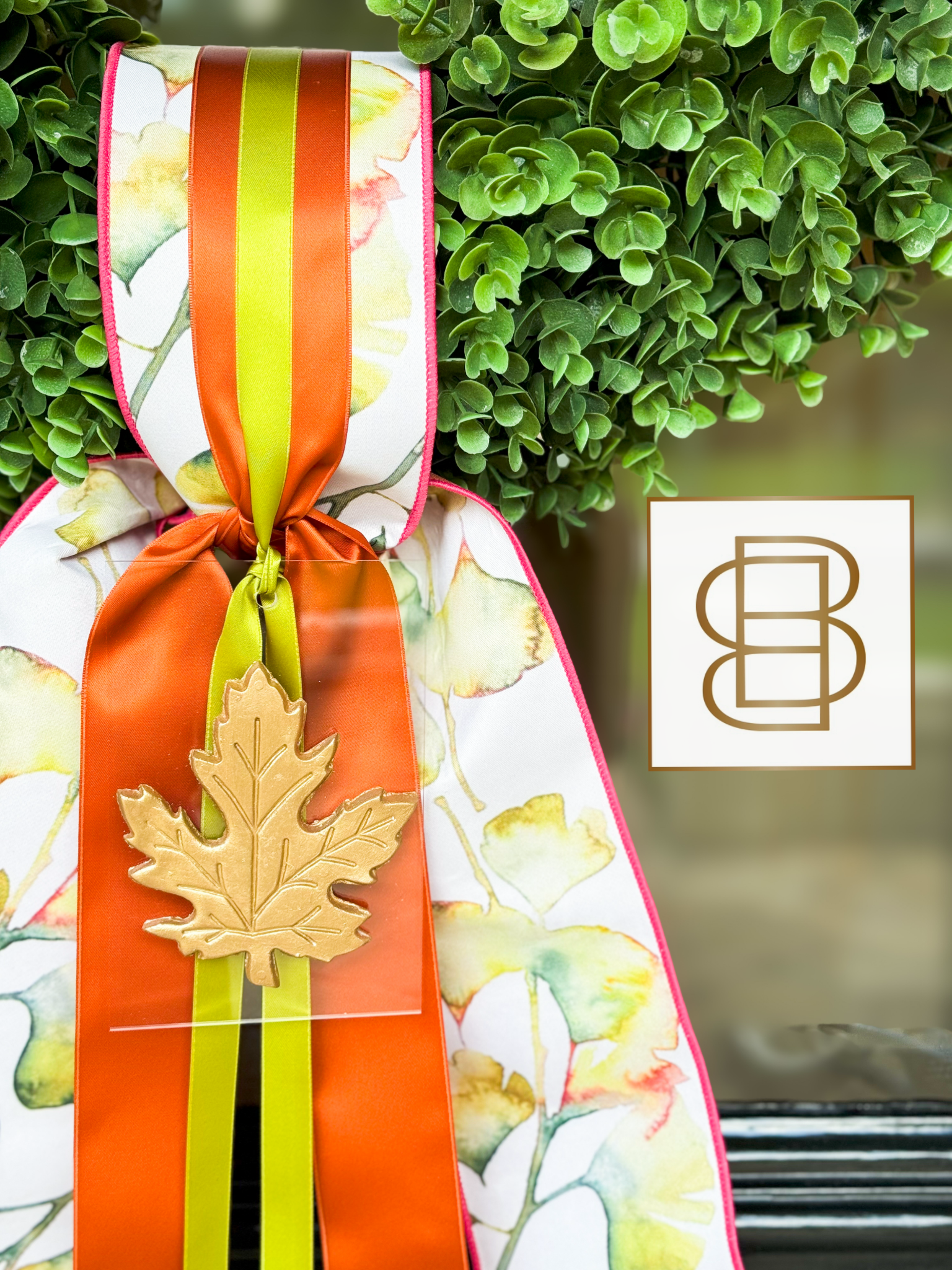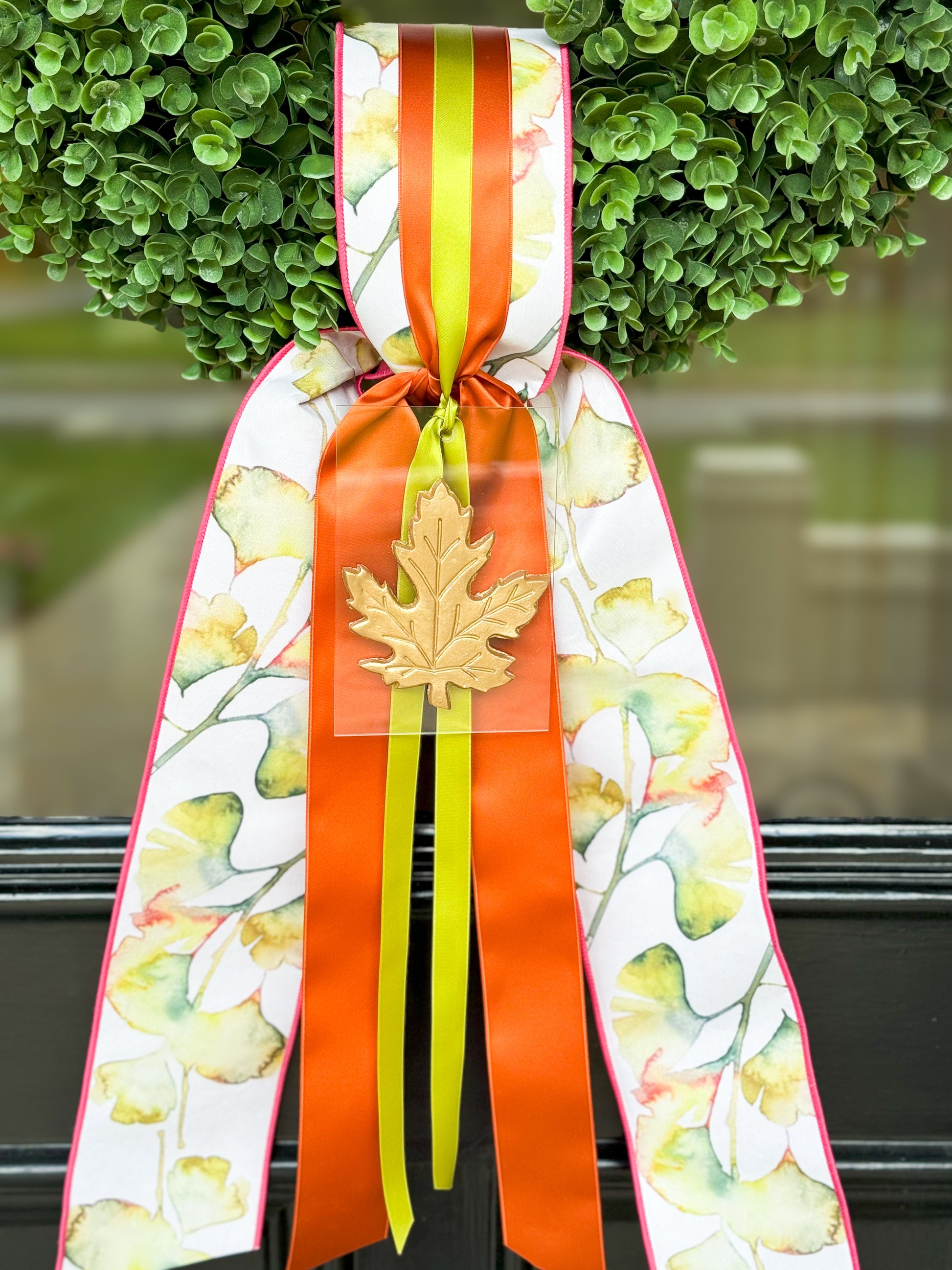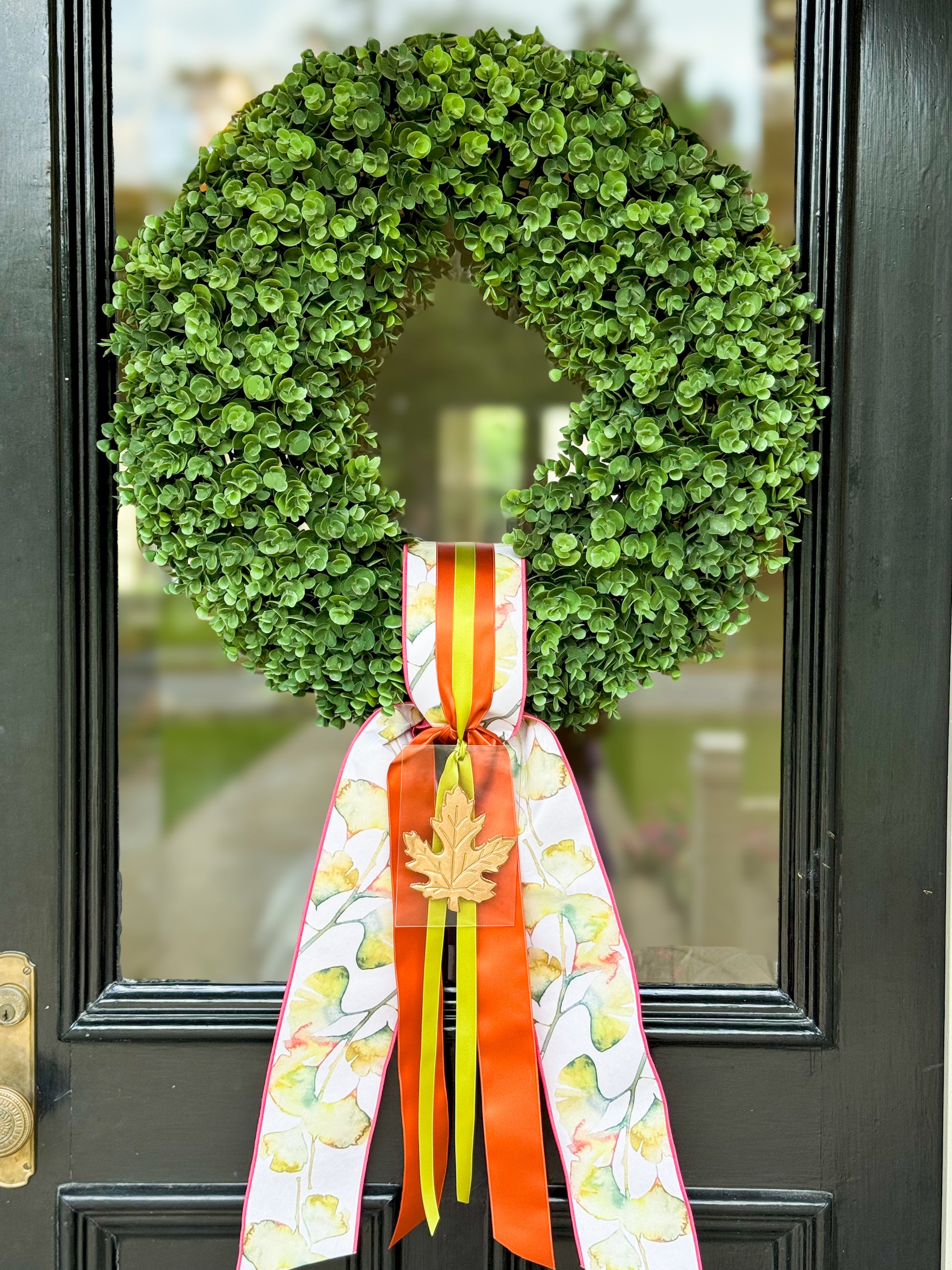 Harvest Real Touch Eucalyptus Wreath And Layered Ribbon Sash With Handmade Ornament