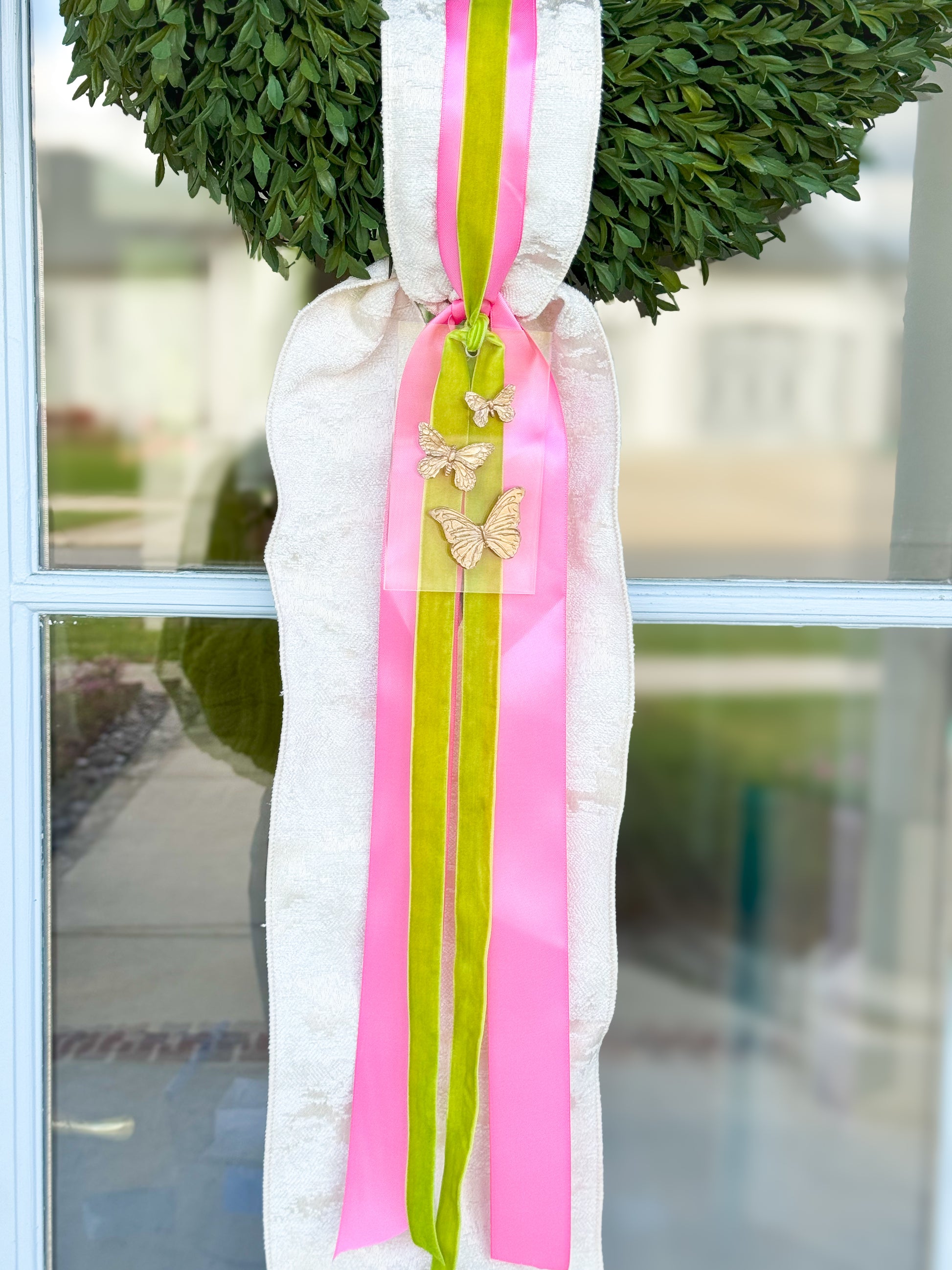 Le Papillon Tea Leaf Wreath And Layered Ribbon Sash