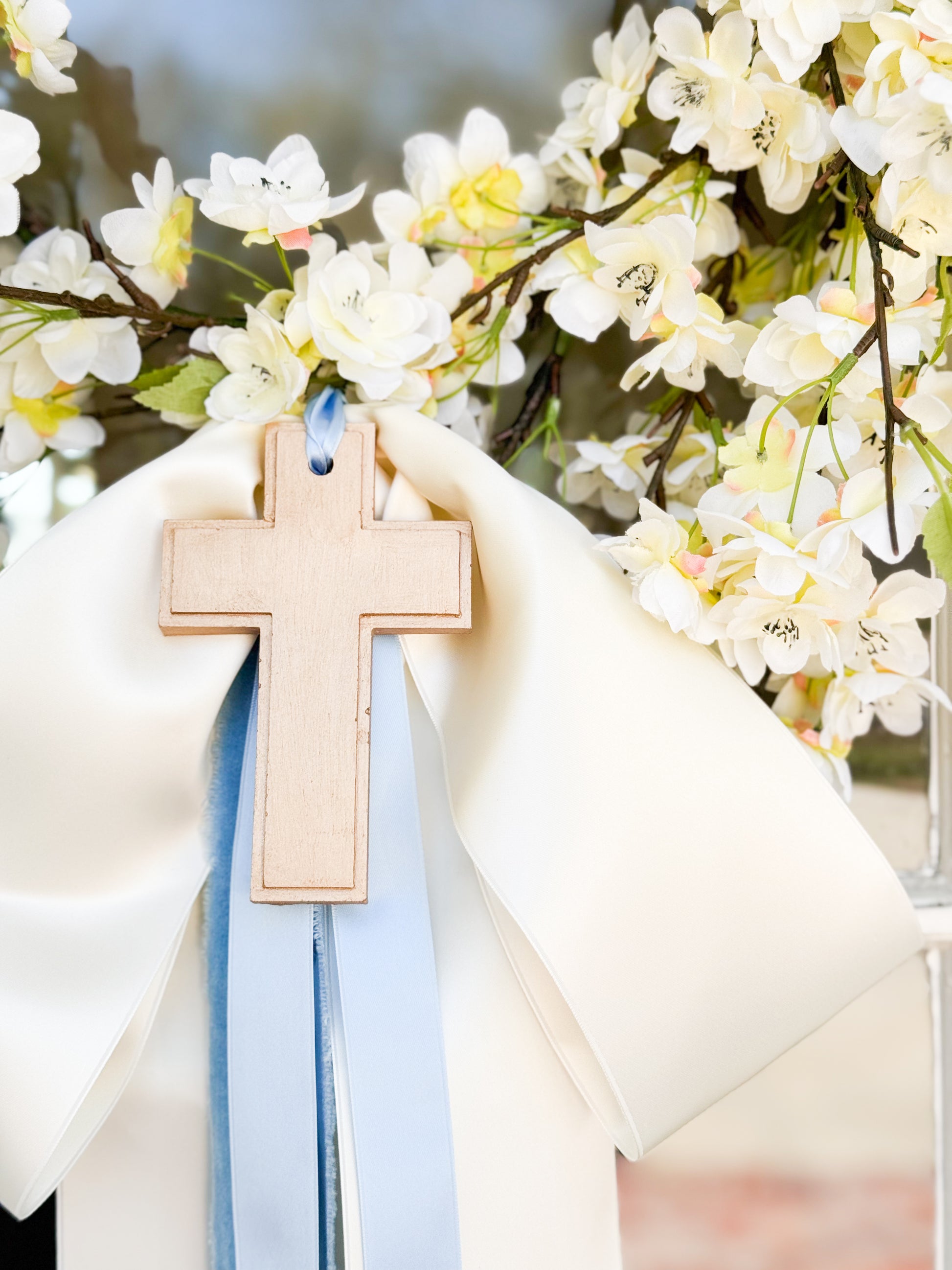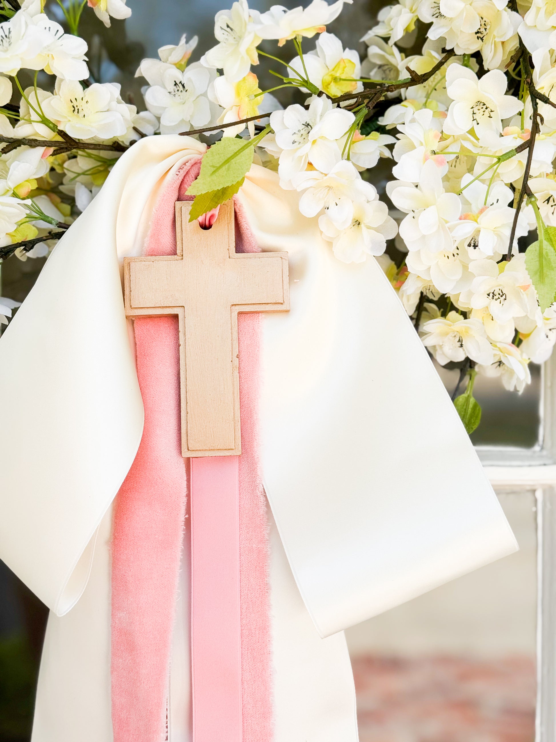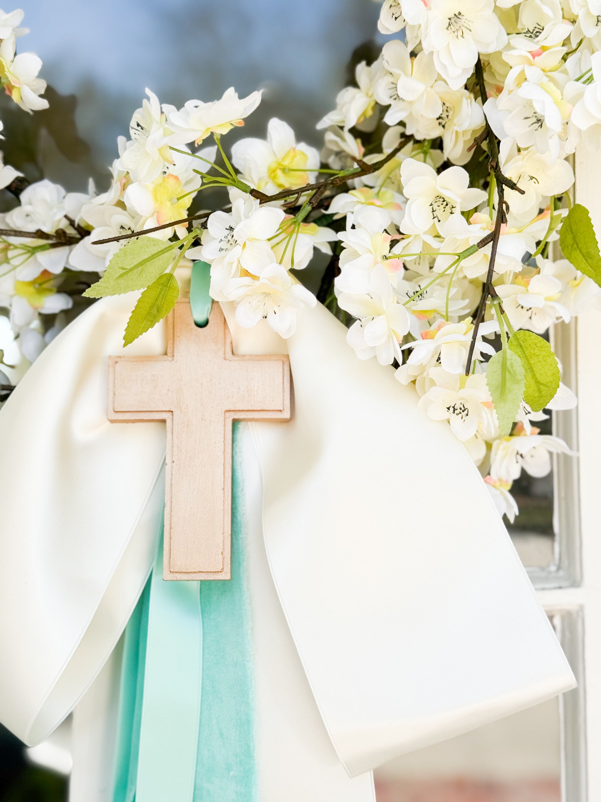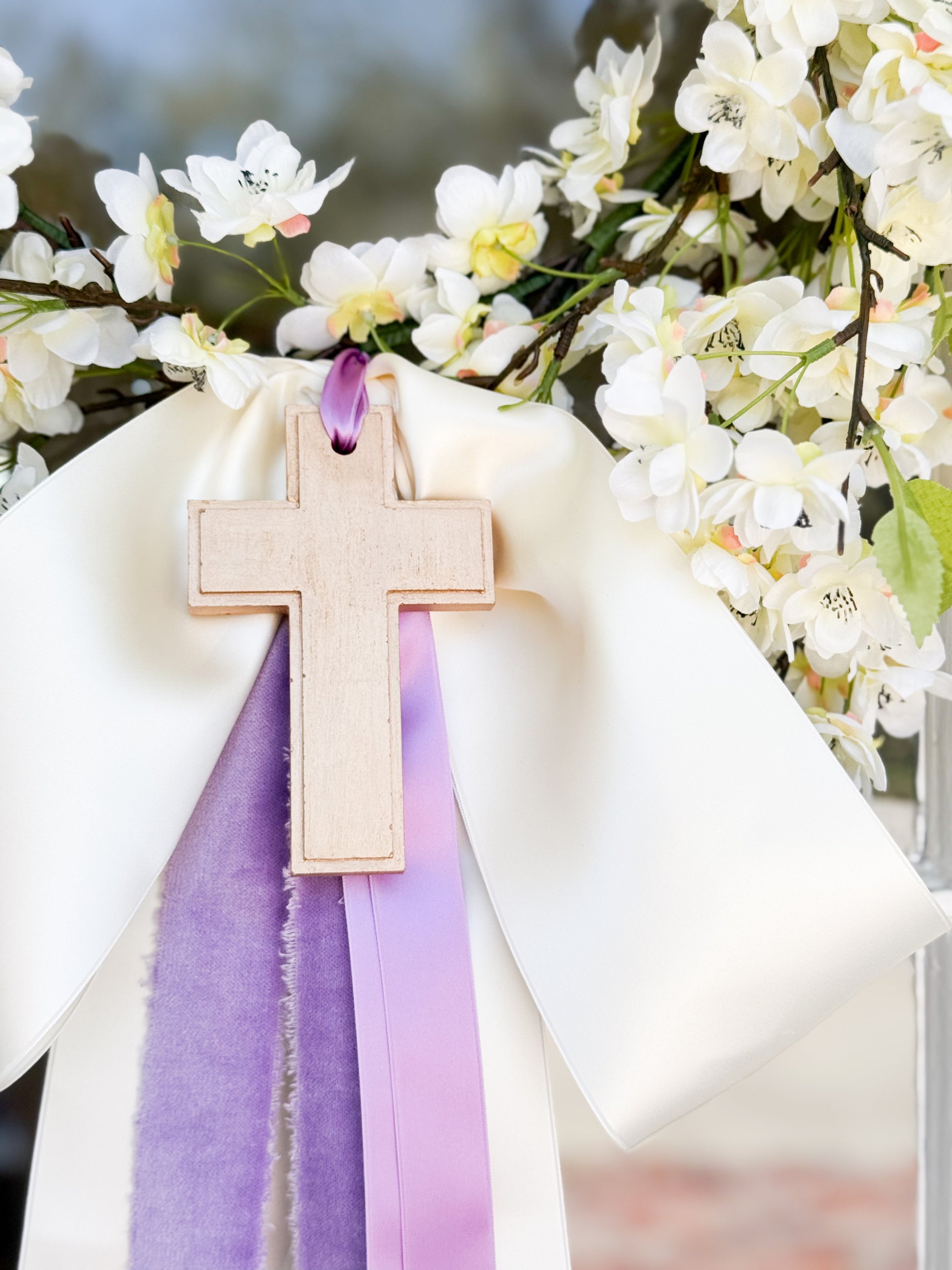 The New Life White Cherry Blossom Wreath Is Available In Four Color Options: Pink, Blue, Aqua And Purple. This Beautiful Design Will Bring New Life To Your Home And Remind’s Us This Holy Season Of God’s Promise For Us.
