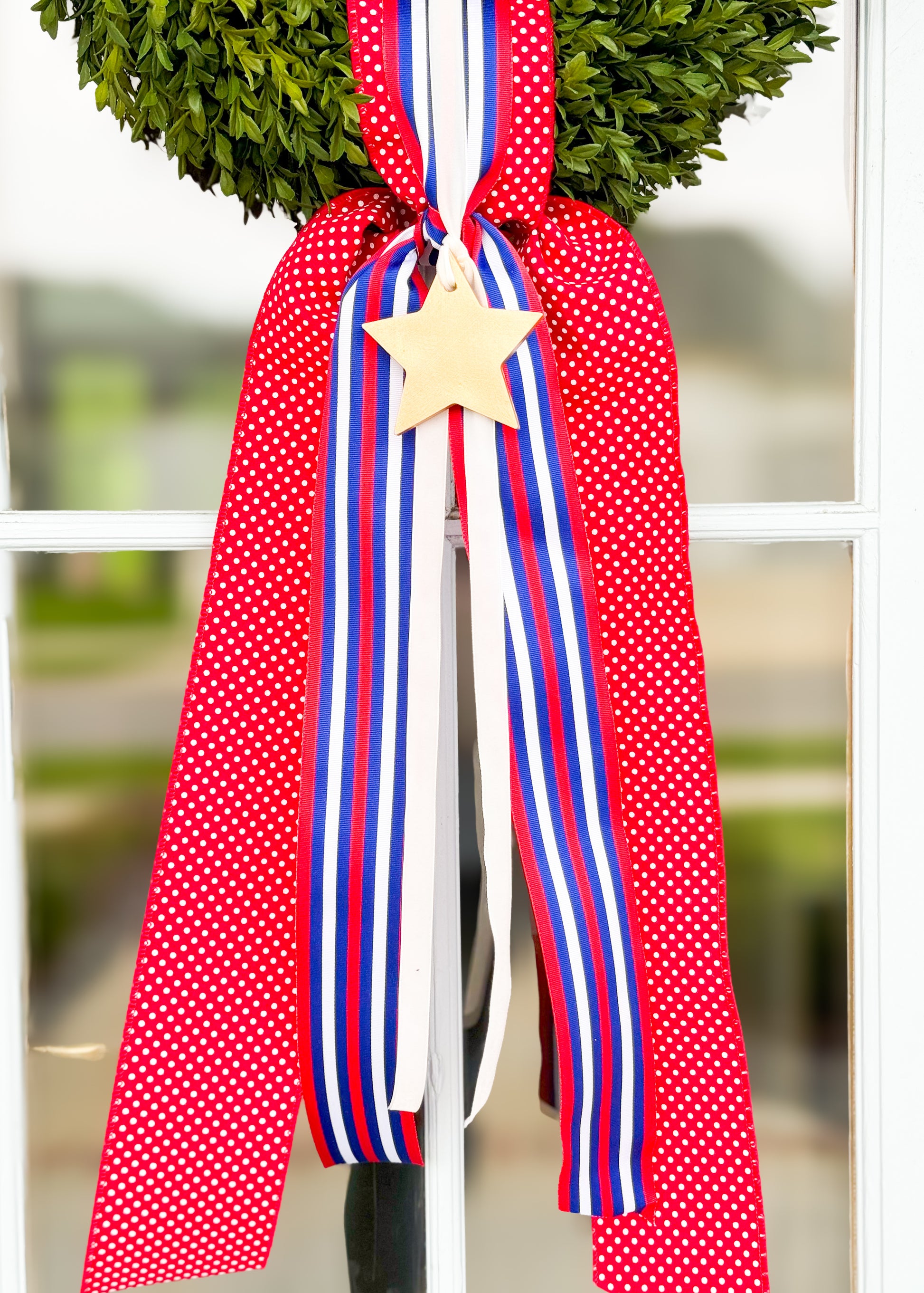 Oh My Stars Tea Leaf Wreath With Layered Ribbon Sash And Handmade Gold Star Ornament