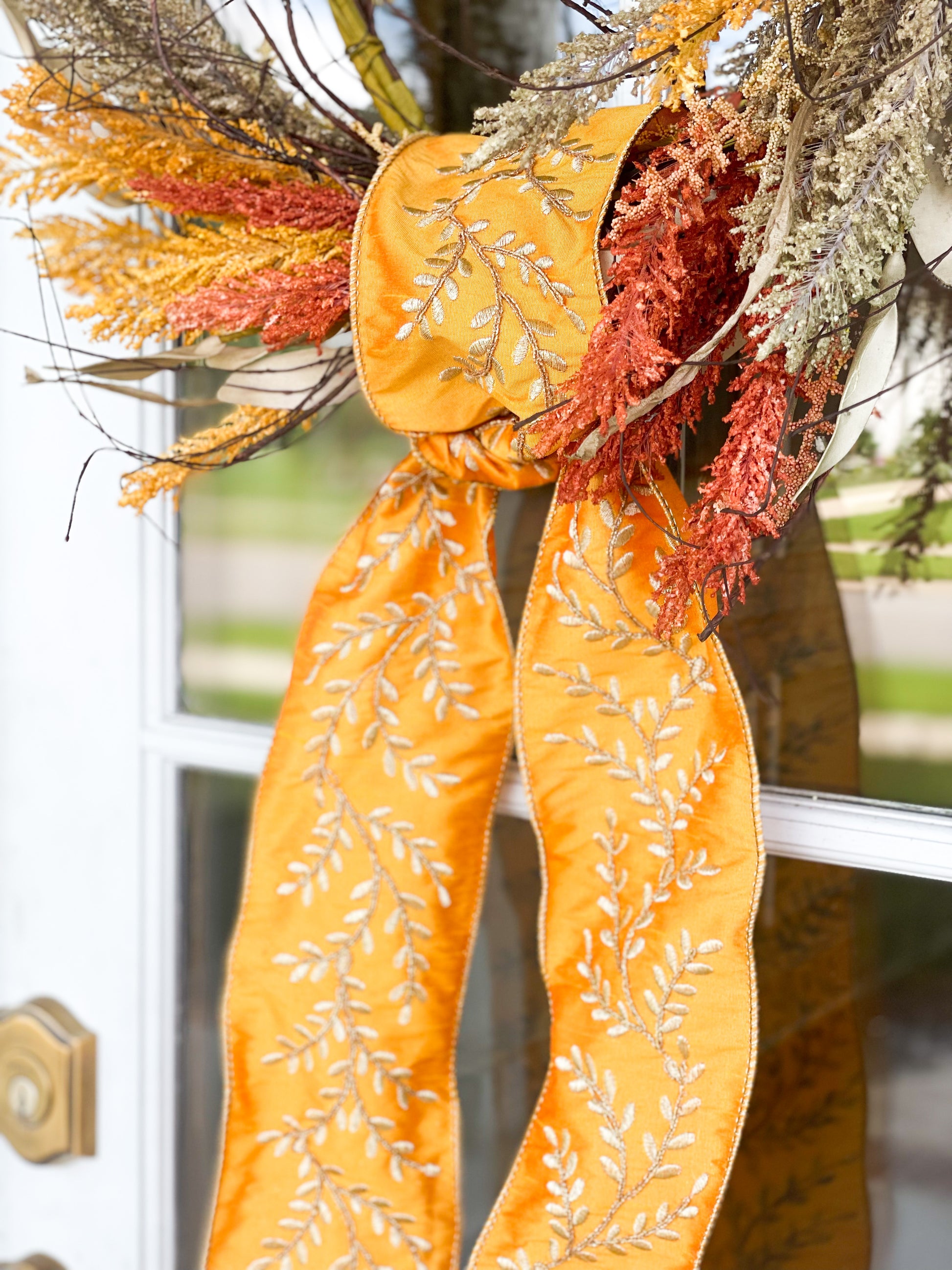 4” x 10yds Faux Dupion Gold Vine Embroidery, Old Gold