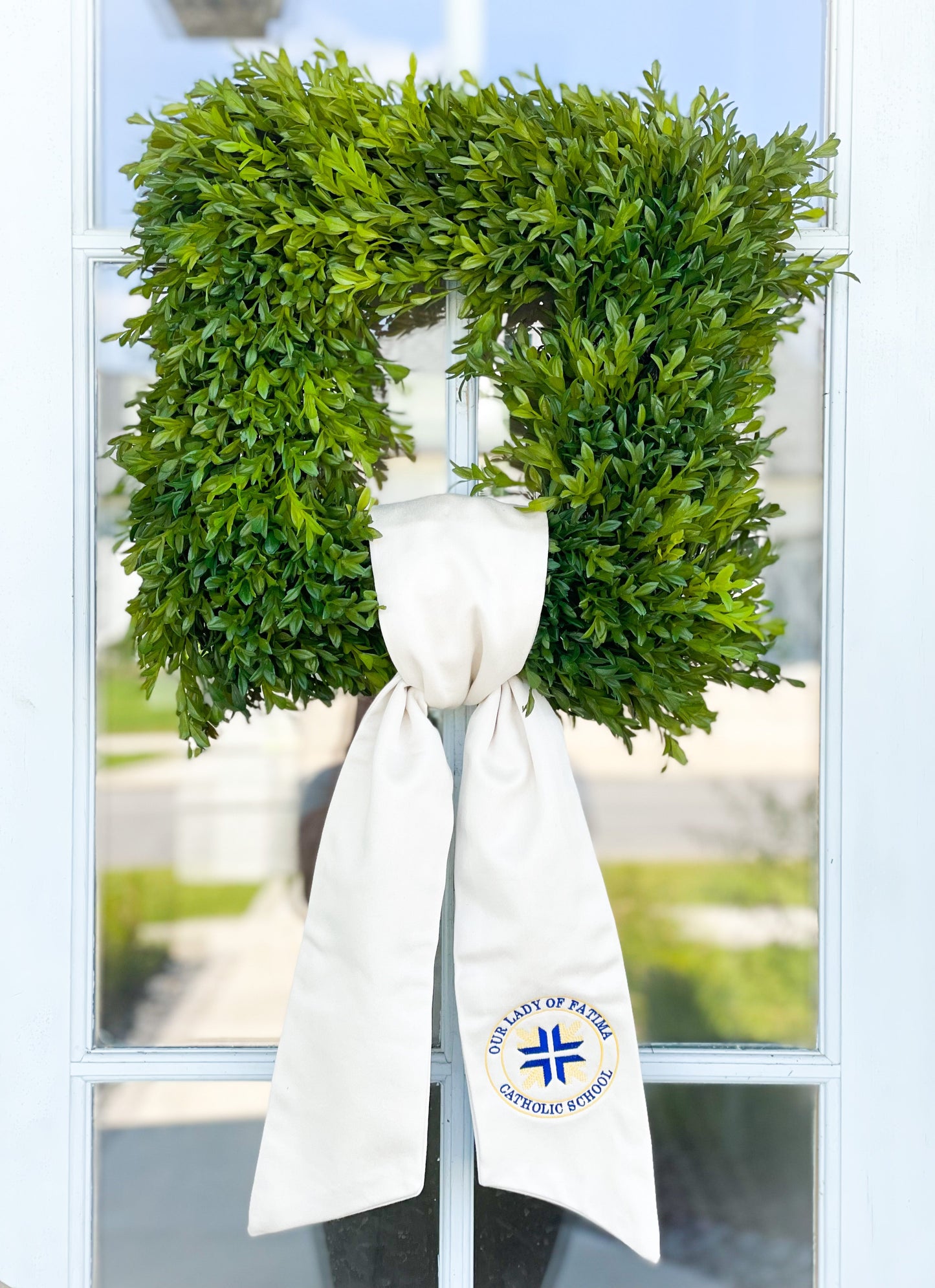 OLF 14” Square Tea Leaf Wreath With Monogrammed Sash