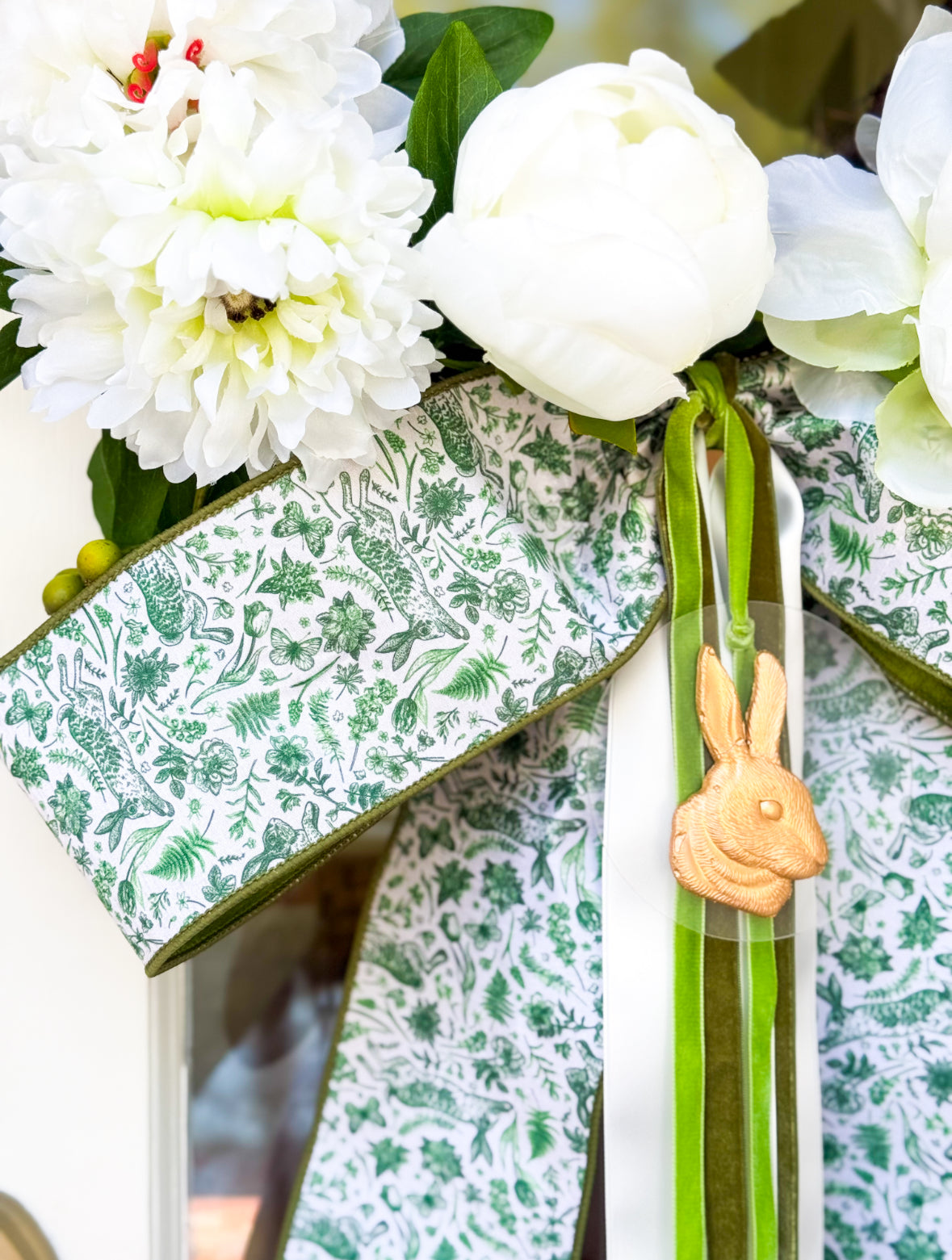 This Neutral Wreath Is Elegant With A Touch Of Playfulness With Its Toile Bunny Ribbon Bow.
